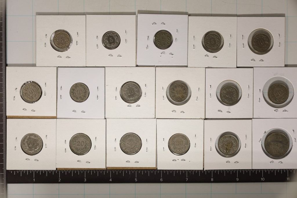 CONTAINS: 4-FIVE RAPPEN, 6-TEN RAPPEN, 6-TWENTY RAPPEN AND 1-ONE SILVER KRONA (.09 OZ. ASW). MAY NOT CONTAIN ALL DATES AND MAY CONTAIN DUPLICATES.