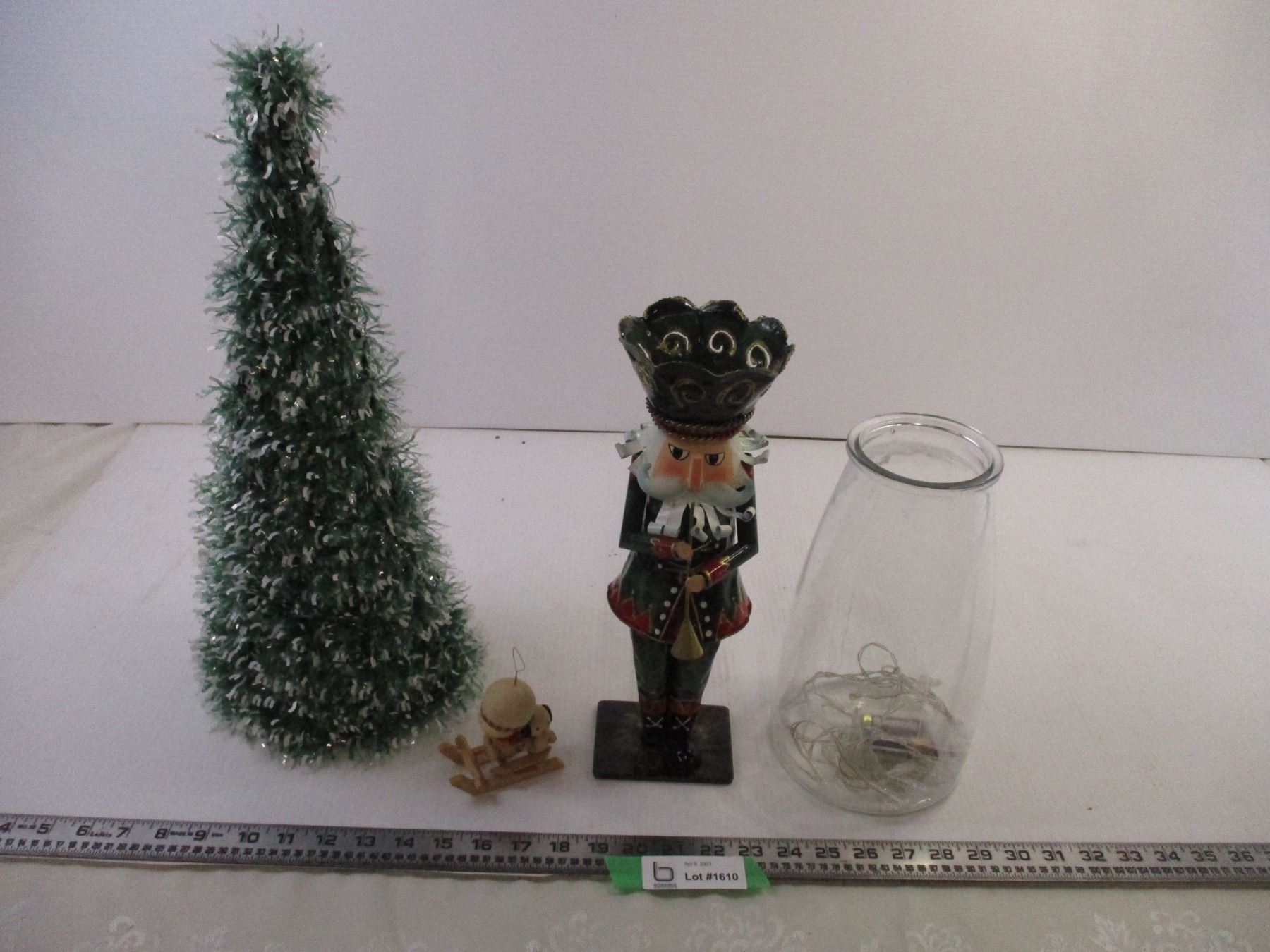 17" Tree w/ Nutcracker and Misc. Christmas Decor