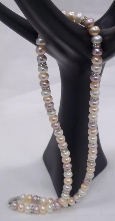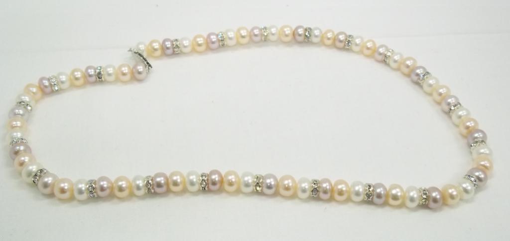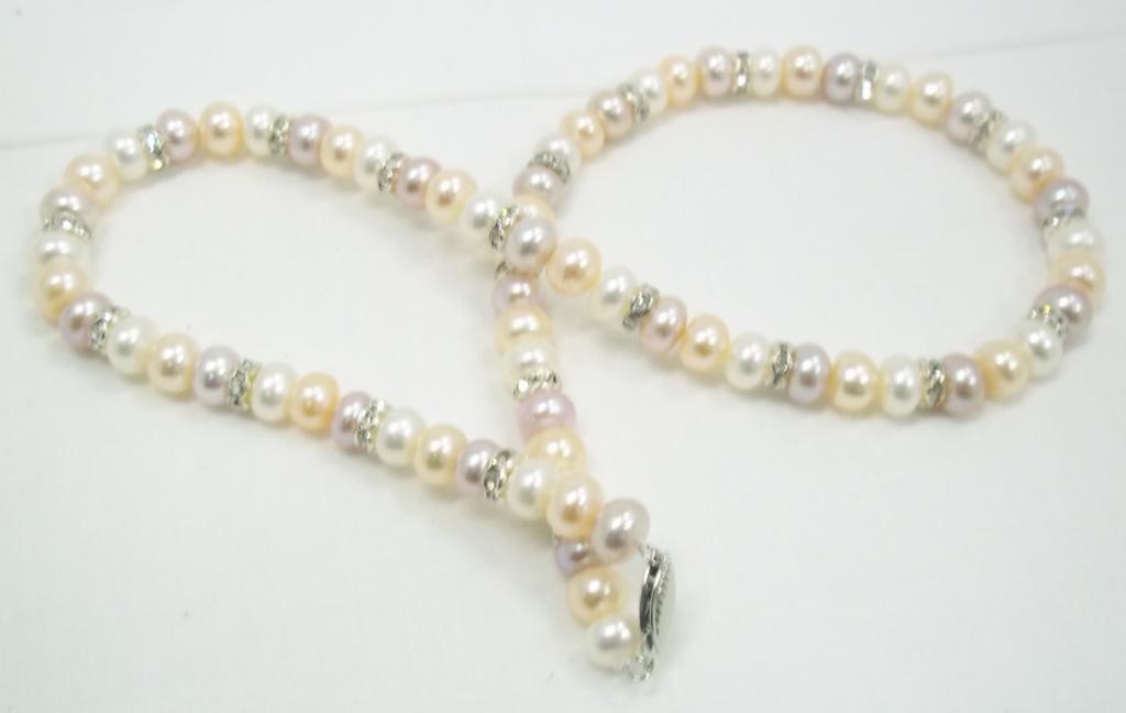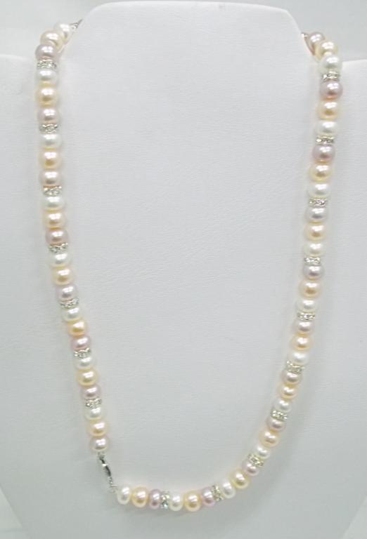 This beautiful 17" tri-colored beauty is accented with roundells to make the perfect single strand pearl necklace. Retail value $571.00.