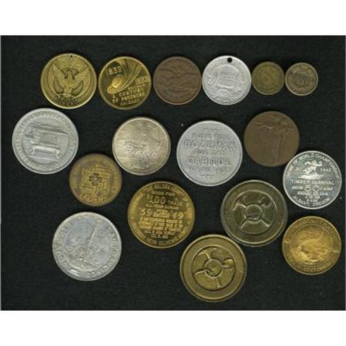 <B>17 Tokens and Medals From the United States and Canada.</B></I> Great lot with a variety of subjects, including the Mid-Winter Exposition in 1894, so-called dollars, Canadian merchant medals, counterstamped 1863 Indian cent, and many others.<BR><BR><b>Shipping:</b> Coins & Currency (<a target="_blank" href="http://www.heritageauctions.com/common/shipping.php">view shipping information</a>)