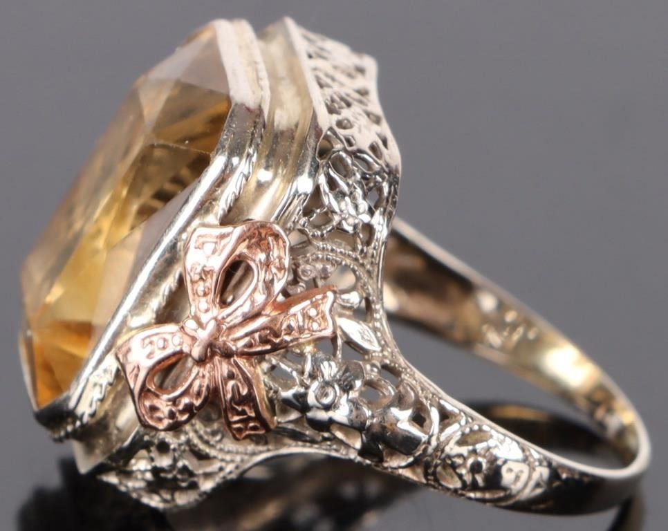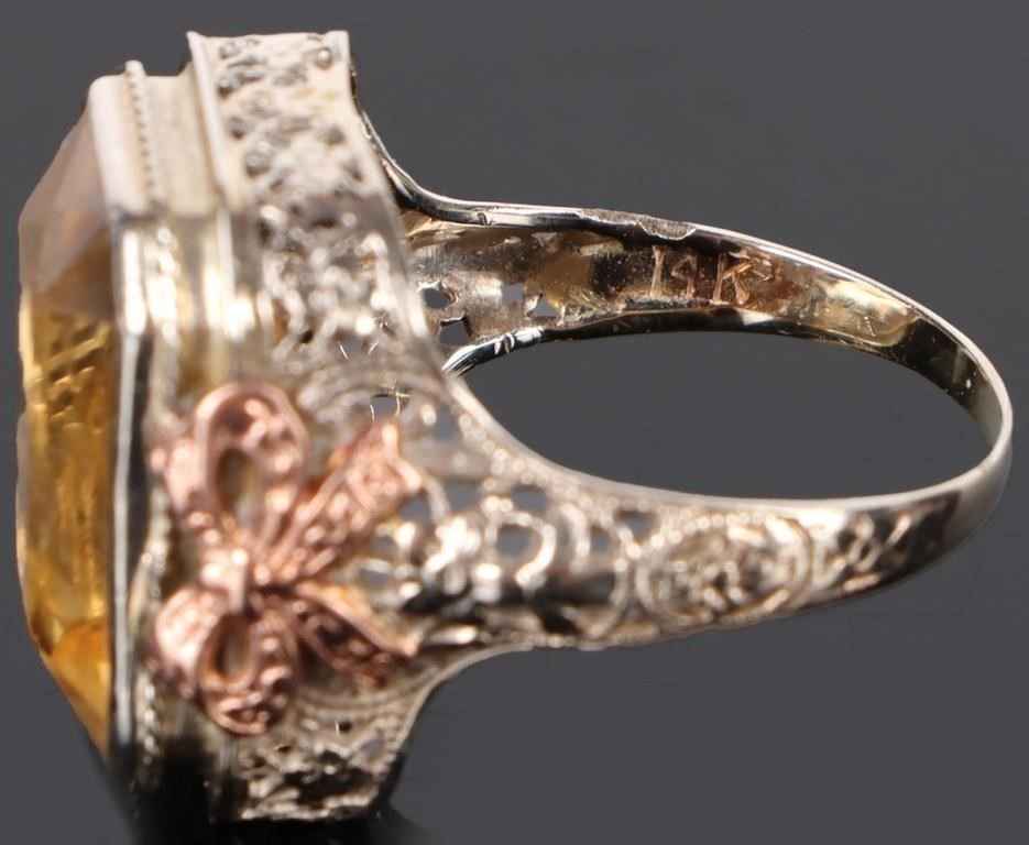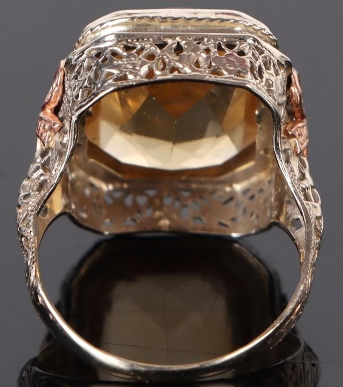 14 kt. white Gold 17 X 12mm Citrine Art Deco Ring.