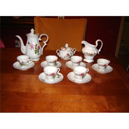 This is a beautiful vintage 17 piece tea set by what I believe is Noritake. I know for certain the the large creamer (which came in the set) is made by Johann Haviland.