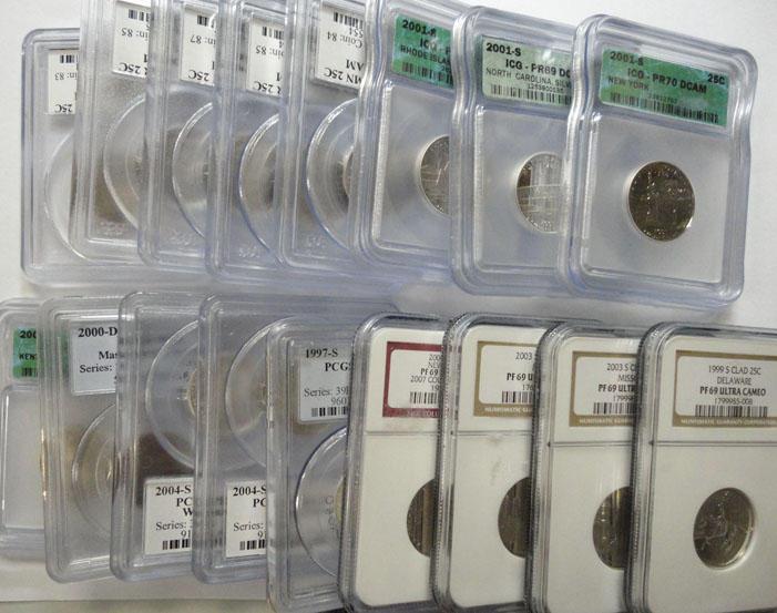 PR69DCAM clad Minn,2 Or-WV-CA--TX and WI silver--NGC same gr clad DE,NH,MISO,