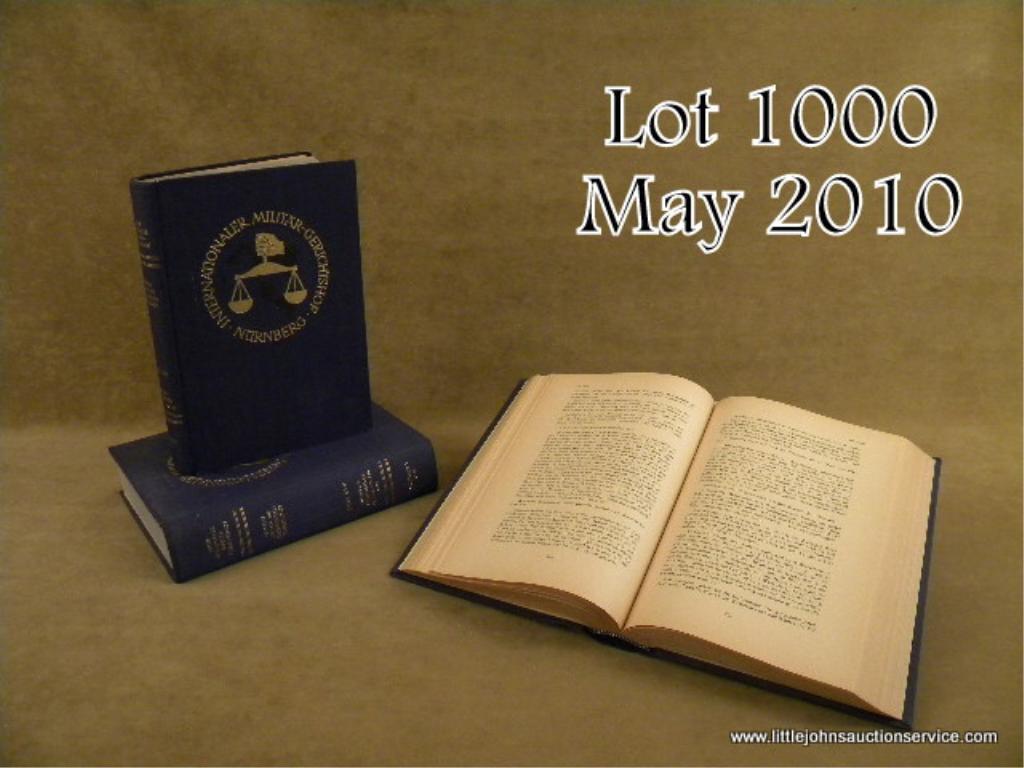 17 volumes of international military findings of the Nuremburg trials published by Veroffentlicht, Germany 1949. Printed in German. A scarce set, originally about 35 volumes. Includes index volume. Blue cloth binding with gold leaflettering. Est: $200 - $400