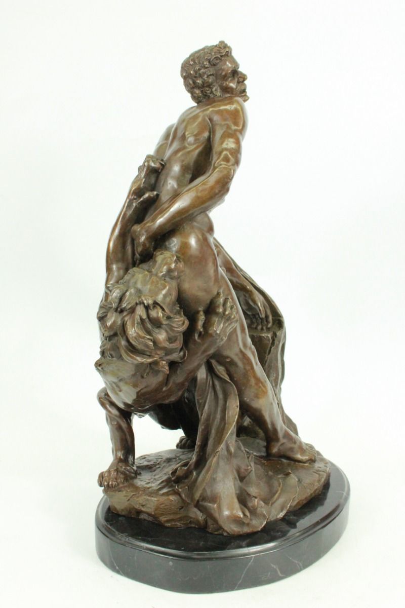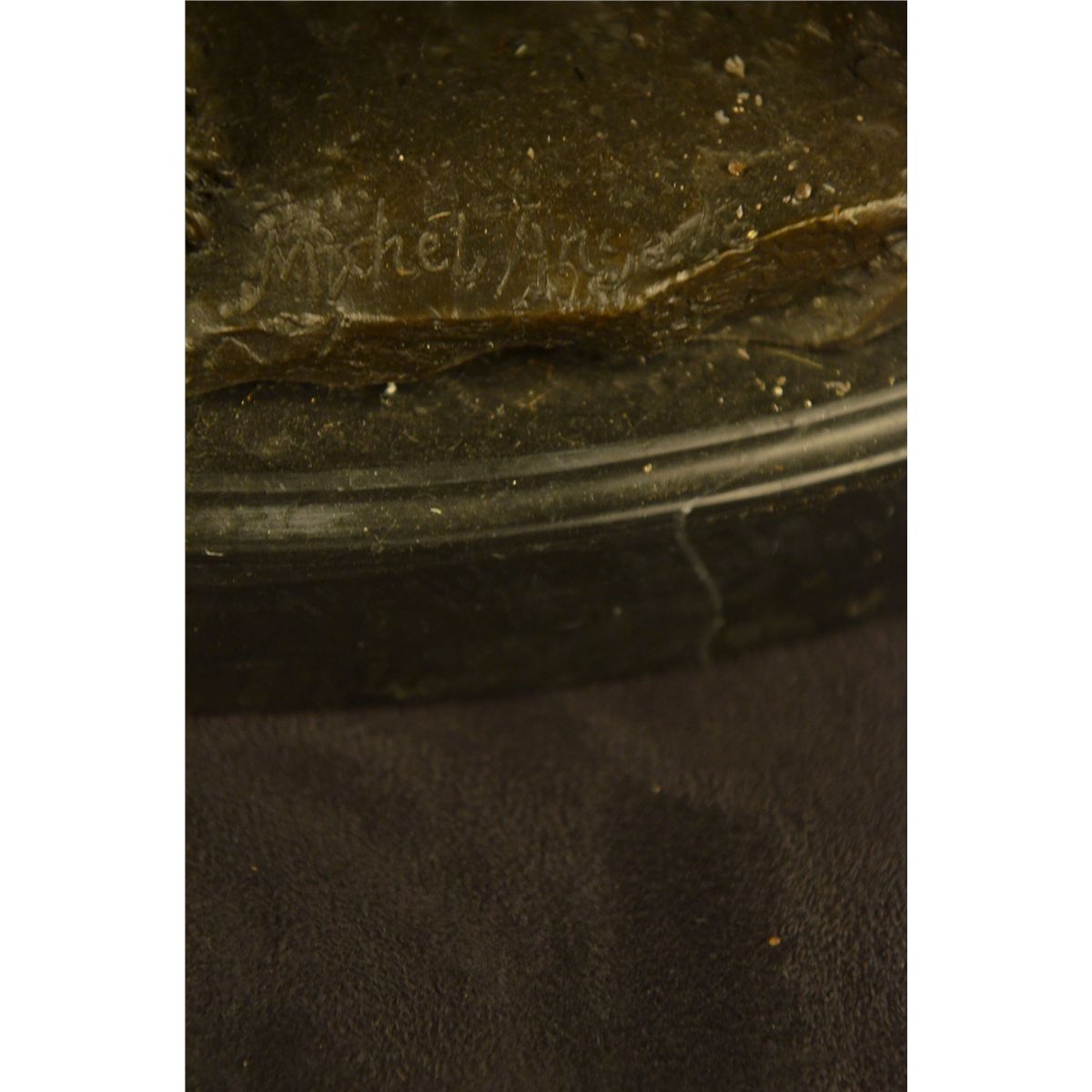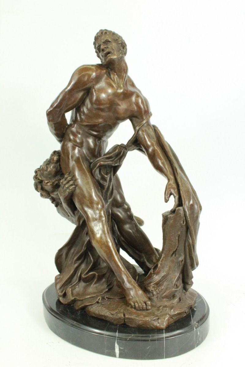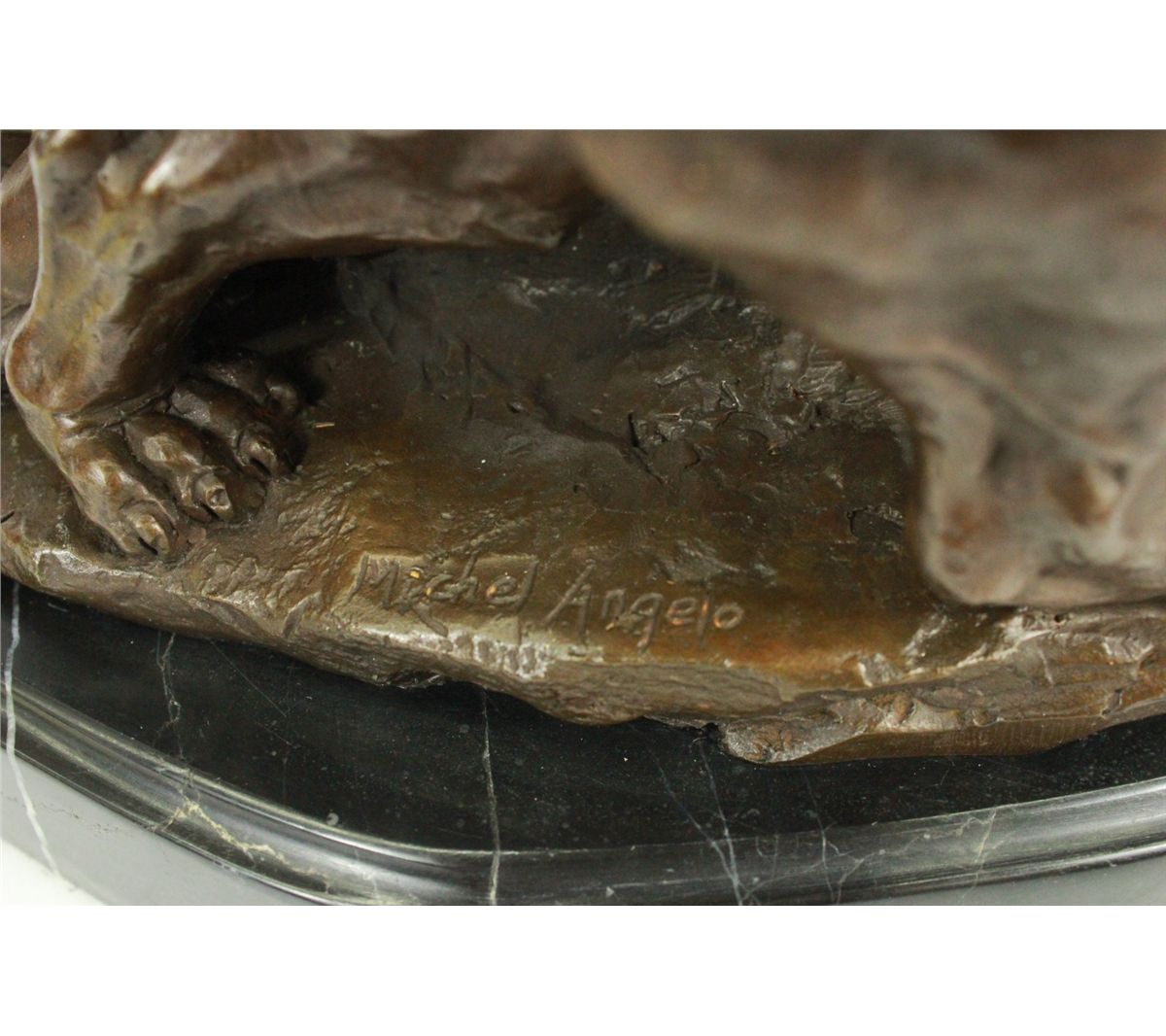 11XN205180 Milo Of Croton (Greek: µ????; Gen.: µ??????) Was A 6Th Century Bc Wrestler From The Magna Graecian City Of Croton In Southern Italy Who Enjoyed A Brilliant Wrestling Career And Won Many Victories In The Most Important Athletic Festivals Of Ancient Greece.[1][2][3] In Addition To His Athletic Victories, Milo Is Credited By The Ancient Commentator Diodorus Siculus With Leading His Fellow Citizens To Military Triumph Over Neighboring Sybaris In 510 Bc. Milo Was Said To Be An Associate Of Pythagoras. One Story Tells Of The Wrestler Saving The Philosopher'S Life When A Roof Was About To Collapse Upon Him, And Another That Milo May Have Married The Philosopher'S Daughter Myia. Like Other Successful Athletes Of Ancient Greece, Milo Was The Subject Of Fantastic Tales Of Strength And Power, Some, Perhaps, Based Upon Misinterpretations Of His Statues. Among Other Tales, He Was Said To Have Carried A Bull On His Shoulders, And To Have Burst A Band About His Brow By Simply Inflating The Veins Of His Temples. The Date Of Milo'S Death Is Unknown, But He Reportedly Was Attempting To Rend A Tree Asunder When His Hands Became Trapped In The Cleft Of Its Trunk, And A Pack Of Wolves Surprised And Devoured Him. Milo Has Been Depicted In Works Of Art By Pierre Puget, Étienne-Maurice Falconet, And Others. In Literature, He Has Been Referenced By Rabelais In Gargantua And Pantagruel And By Shakespeare In Troilus And Cressida. He Was Fashioned Using The Ancient Method Of The Lost-Wax Technique And Stained With A Brown Patina Finish For Conservation. The Sculpture Is Mounted Upon A Black Marble Base With The Artist Michelangelo'S Signature...................SHIPPING USA: $30....HI, ALASKA, CANADA: $89...ALL OTHER COUNTRIES: $249