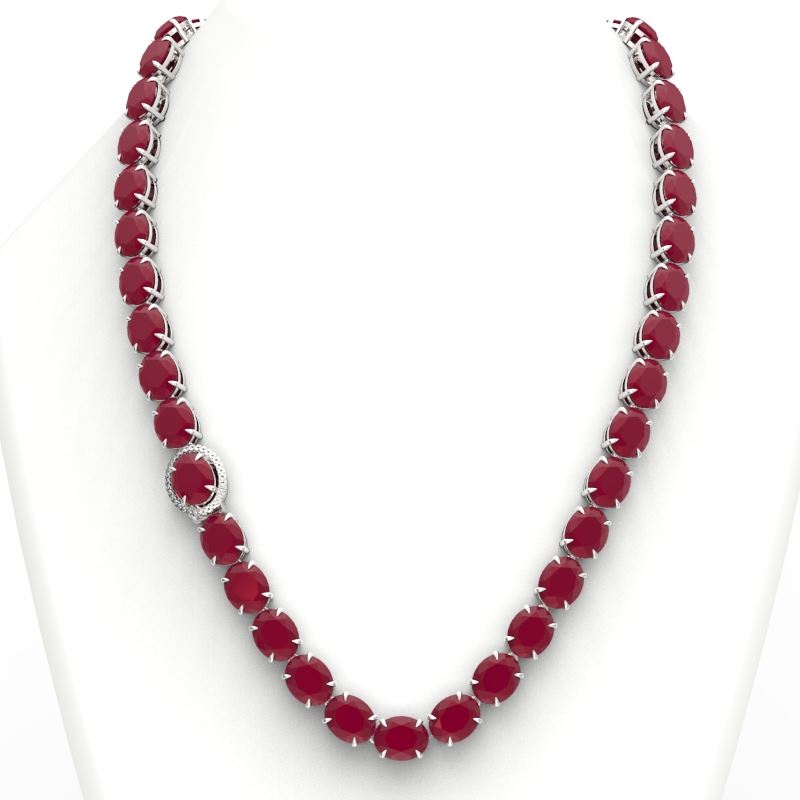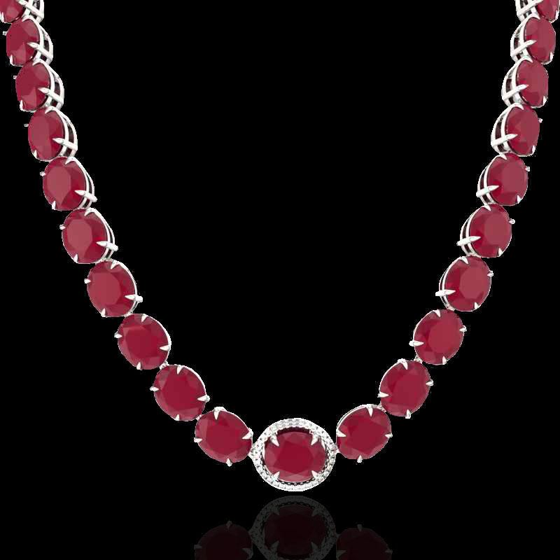 REF-993N8Y -22312 ---- 170 CTW Ruby & VS/SI Diamond Halo Micro Eternity Necklace 14K White Gold ---- Luxury Designer Brand Necklace Appraised at $71,050 Certificate Number US22312 14k White gold, Necklace Size is 18 Inches, Necklace measuring approx. 8 mm x 18 inches, weighing in total approx. 40 grams. Made in the USA and is stamped 14k, Main stone 169.75 carat total weight containing 41 pieces of Mid-Opaque-Deep Red color with AAA quality Oval shape cut Ruby , Stone #2 0.25 carat total weight containing 32 pieces of H-I color with VS/SI quality Round shape cut Diamond