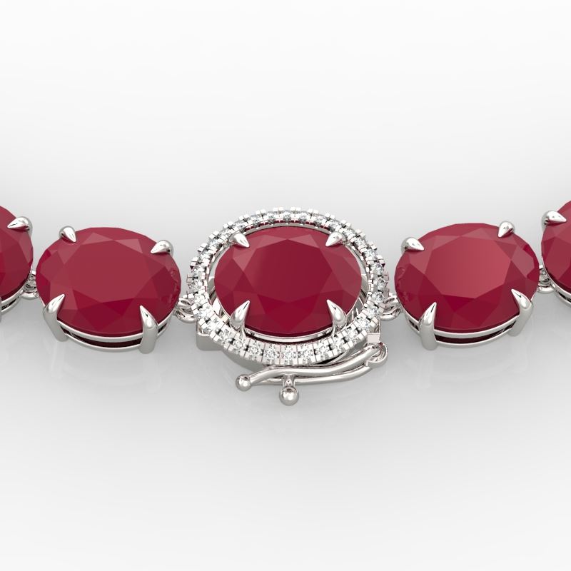 170 CTW Ruby & VS/SI Diamond Necklace 14K White Gold ---- Luxury Designer Brand Necklace Appraised Retail Price at $76,500 ---- SKU Number US22312 14K White gold Necklace Size is 16 Inches, Can custom fit length, Necklace measuring approx. 8 mm x 17 inches, weighing in total approx. 40 grams. Made in the USA and is stamped 14K, Main stone 169.75 carat total weight containing 41 pieces of Intense Mid-Opaque Red color with AAA quality Oval shape cut Ruby , Stone #2 0.25 carat total weight containing 32 pieces of G-H color with VS/SI quality Round shape cut