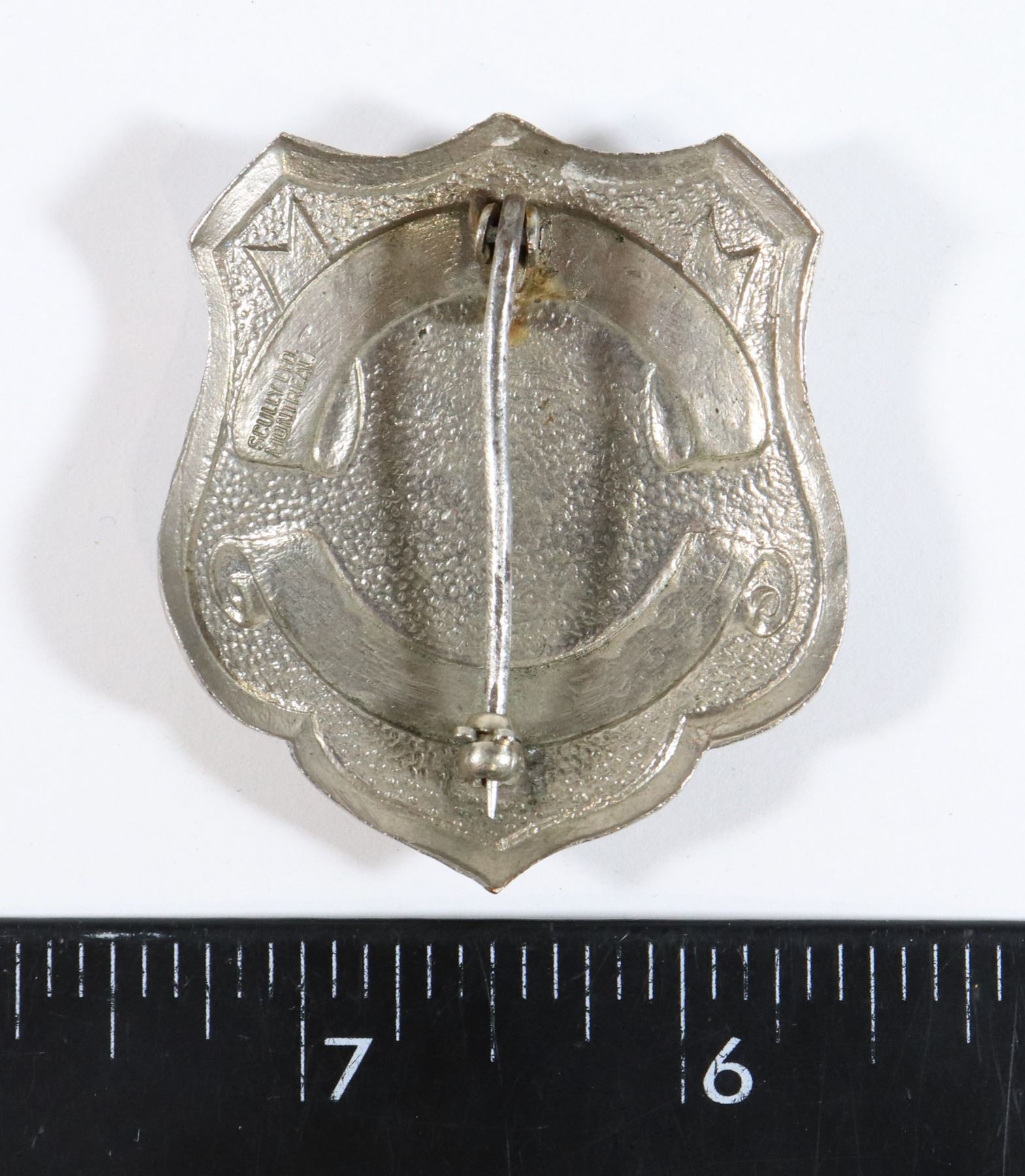 NUMBERED #20 EARLY SCULLY LTD MONTREAL MAKER MARKED ON REVERSE VINTAGE FRENCH CANADIEN CANADA CANADIAN POLICE LAW ENFORCEMENT CAP BADGE INSIGNIA
