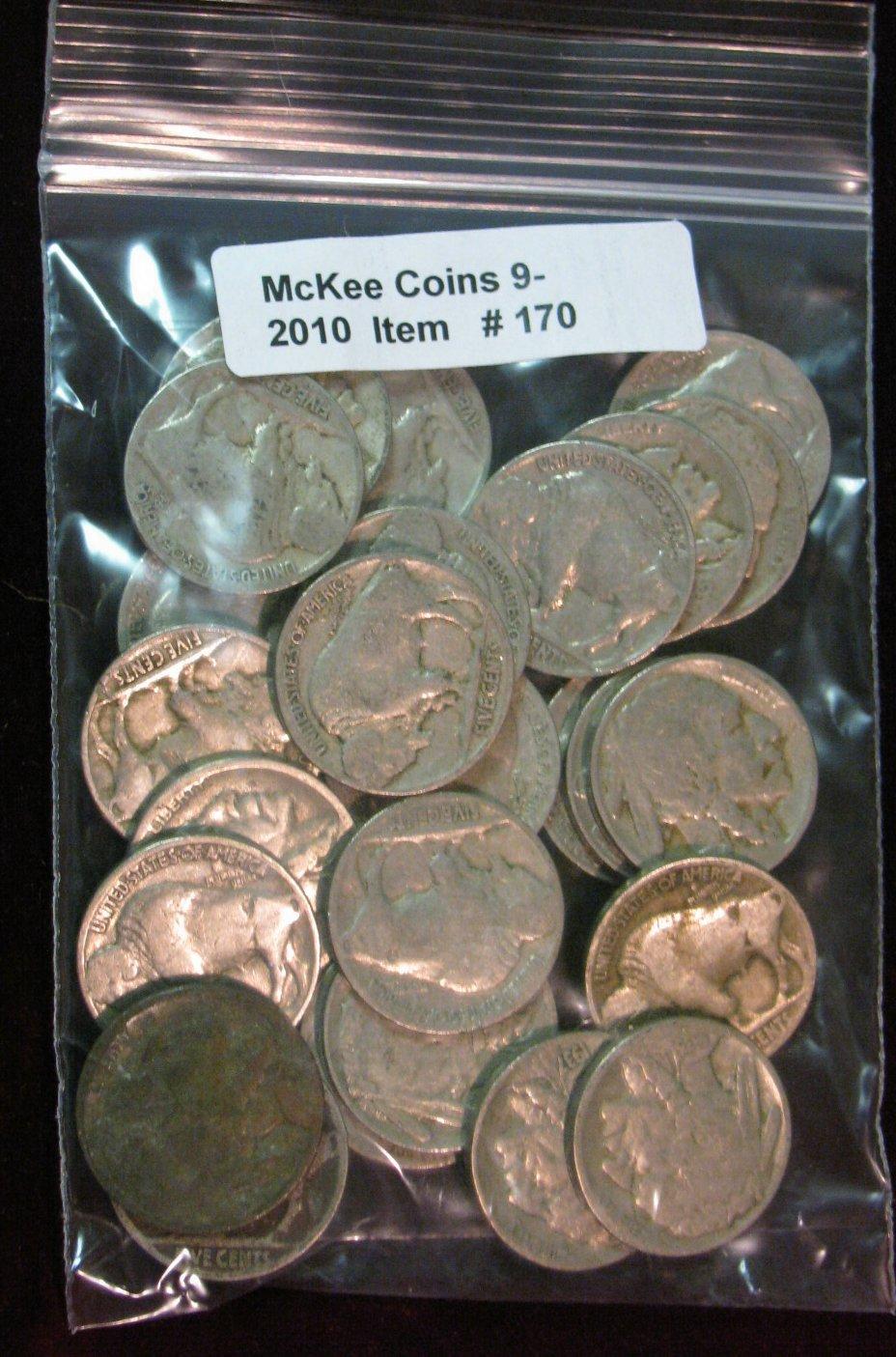 170. Roll of (25) Mixed Date Buffalo Nickels. Average circulated.