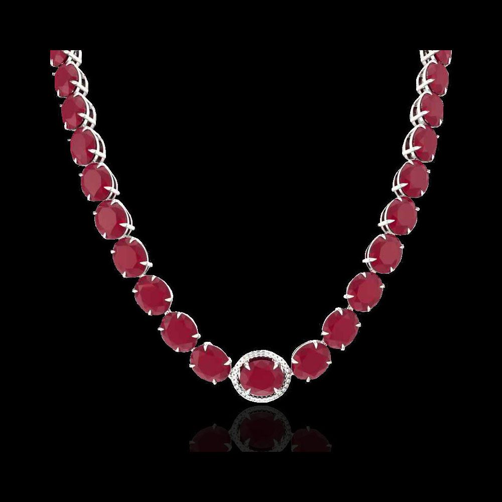 170 ctw Ruby & Diamond Micro Eternity Necklace 14K White Gold