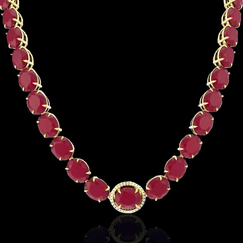 SKU: 22313 ---- 170 ctw Ruby & Diamond Micro Eternity Necklace 14k Yellow Gold
