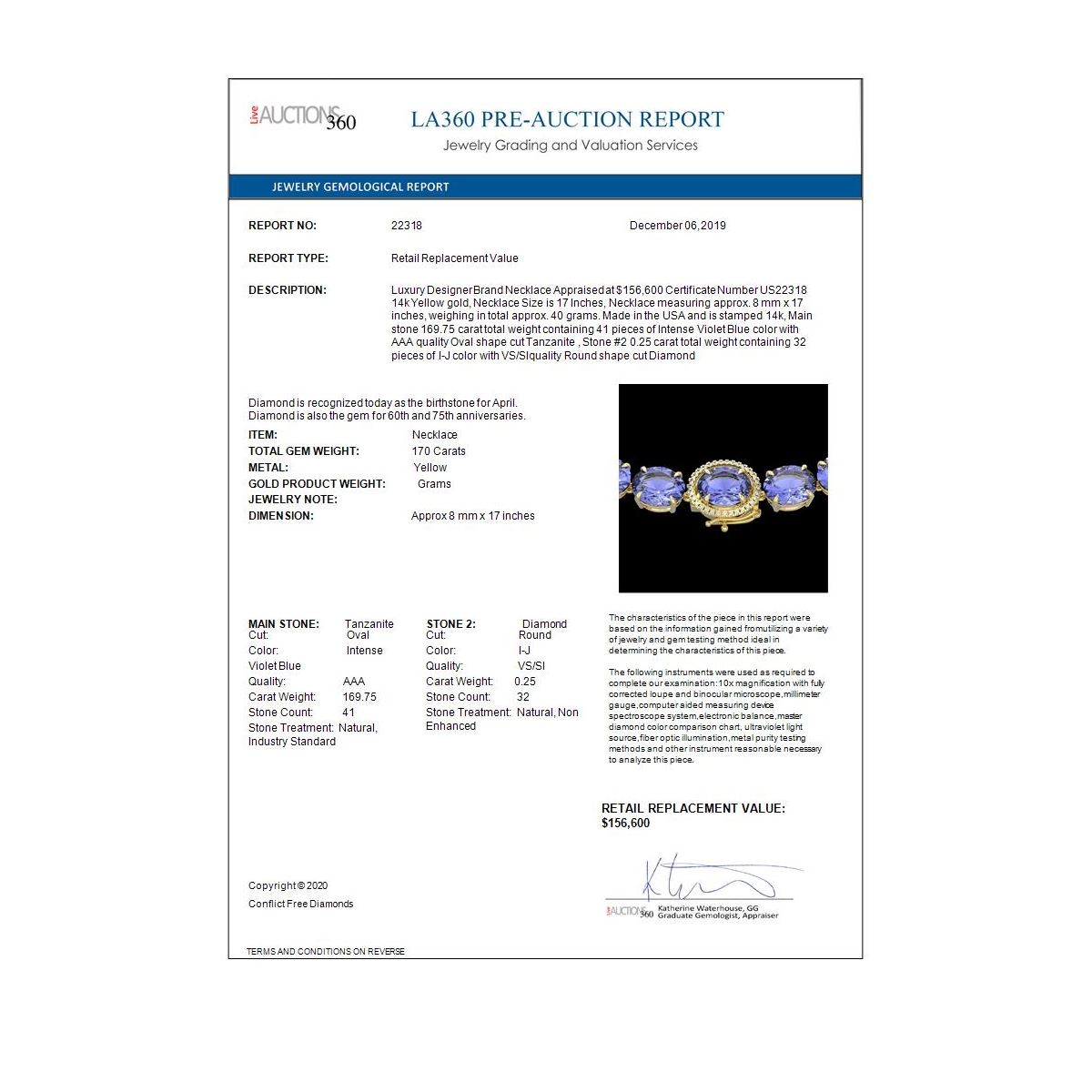 REF-3163A6N - SKU: 22318 ---- 170 ctw Tanzanite & Diamond Micro Eternity Necklace 14k Yellow Gold