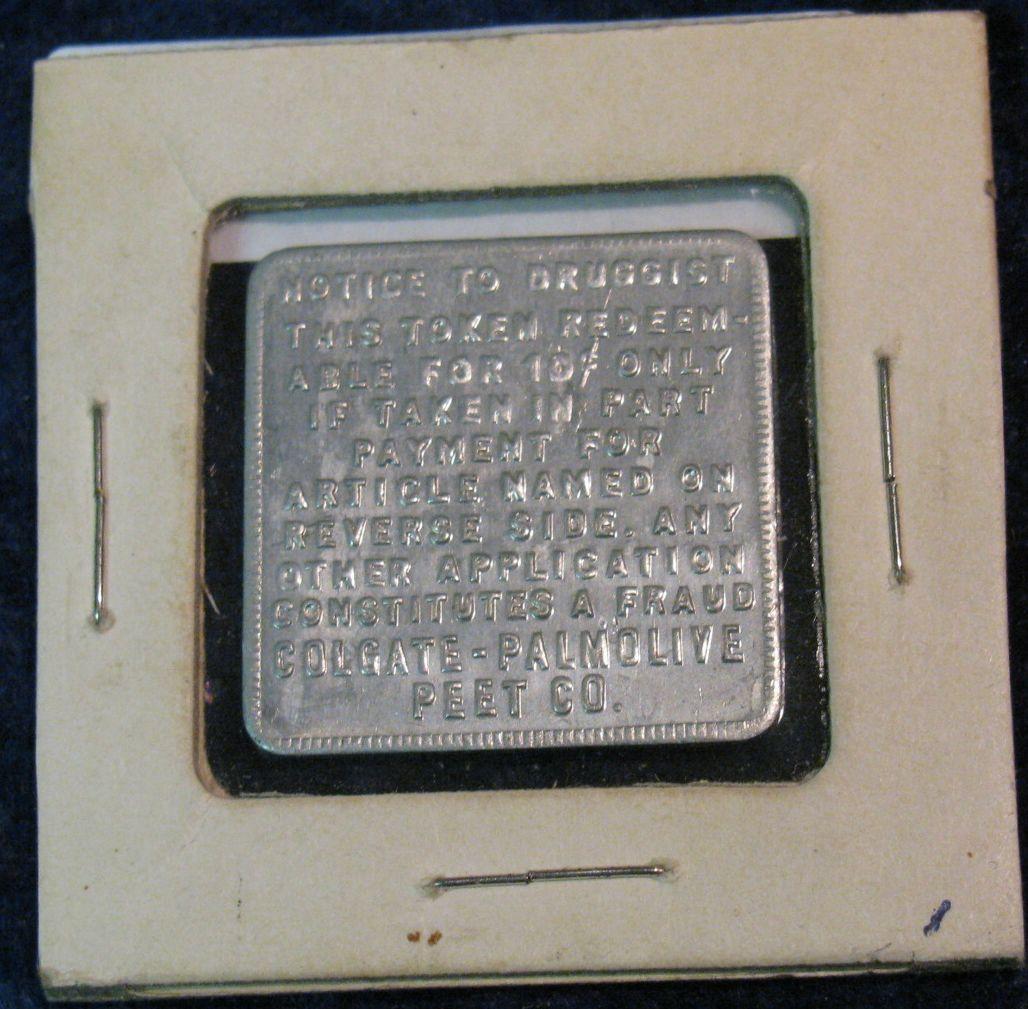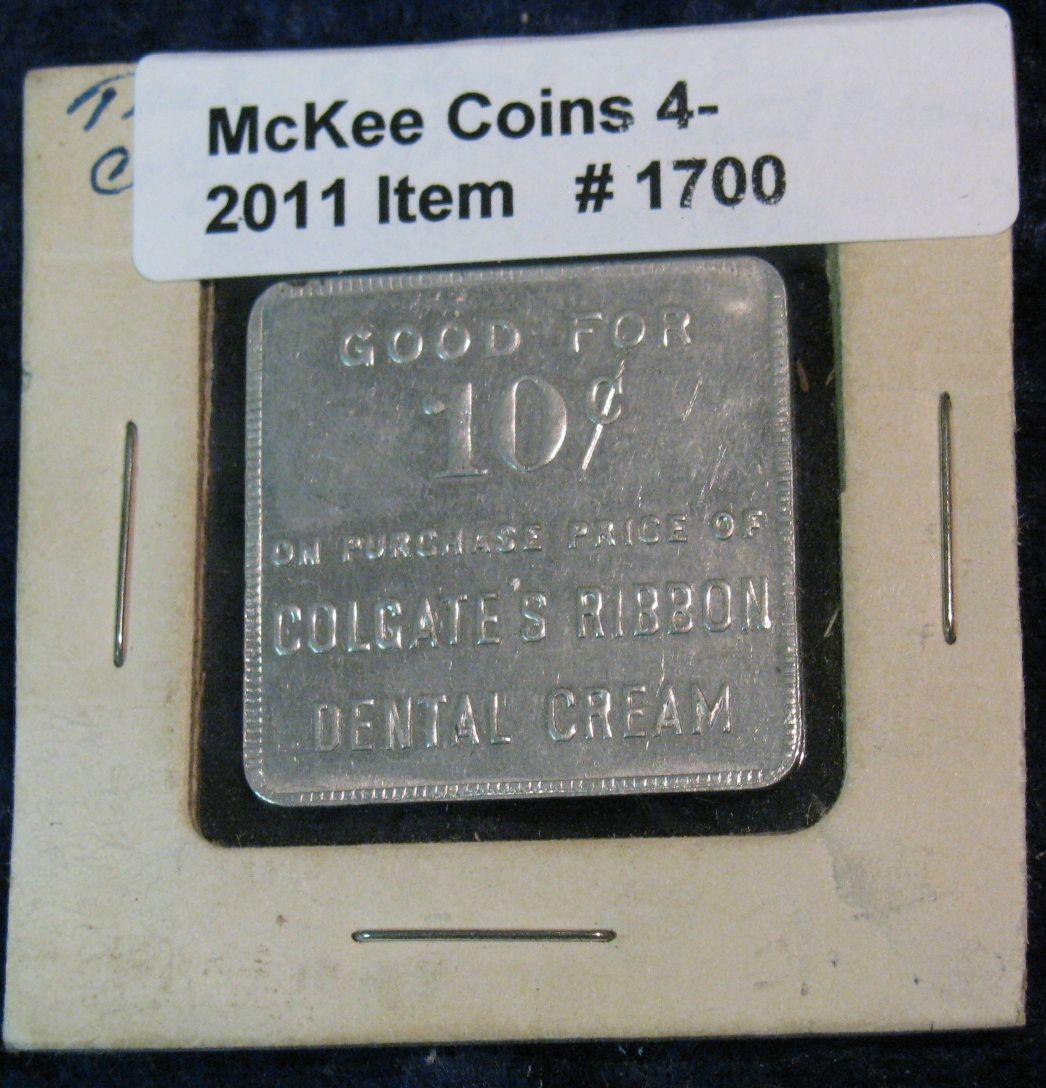 1700. "Good For/10c/on Purchase Price of/Colgate's Ribbon/Dental Cream", Alum, Square, 27mm. EF.