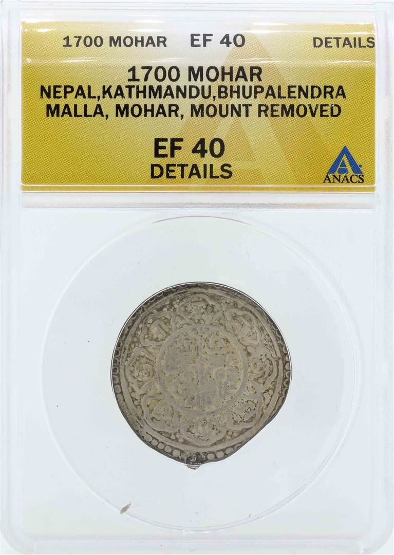 One 1700 Nepal Kathmandu Mohar Coin ANACS EF40 Details. ANACS Appraised.