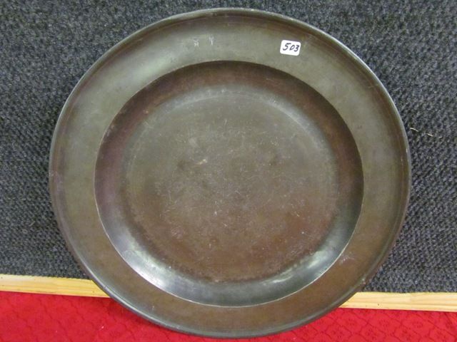1700's Pewter Charger 16.5" diameter marked MT under crown