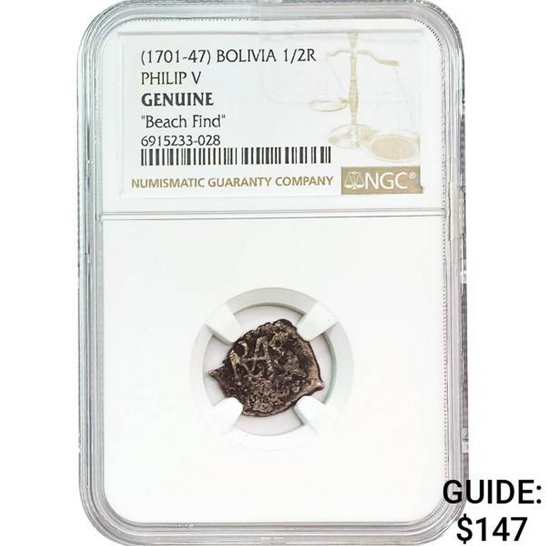 [1701-47] Bolivia 1/2 Real Philip V "Beach Find"