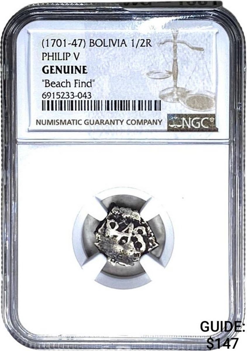 [1701-47] Peru 1/2 Real-Philip V "Beach Find" NGC GENUINE