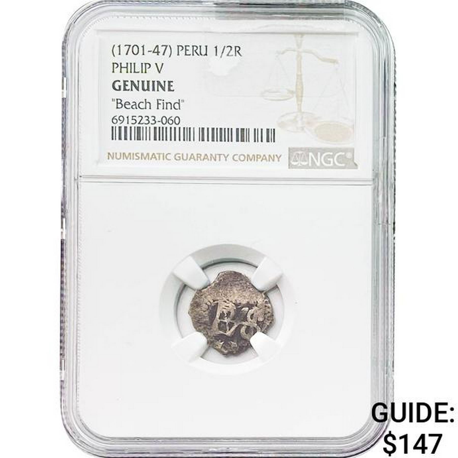 [1701-47] Peru 1/2 Real-Philip V "Beach Find" NGC