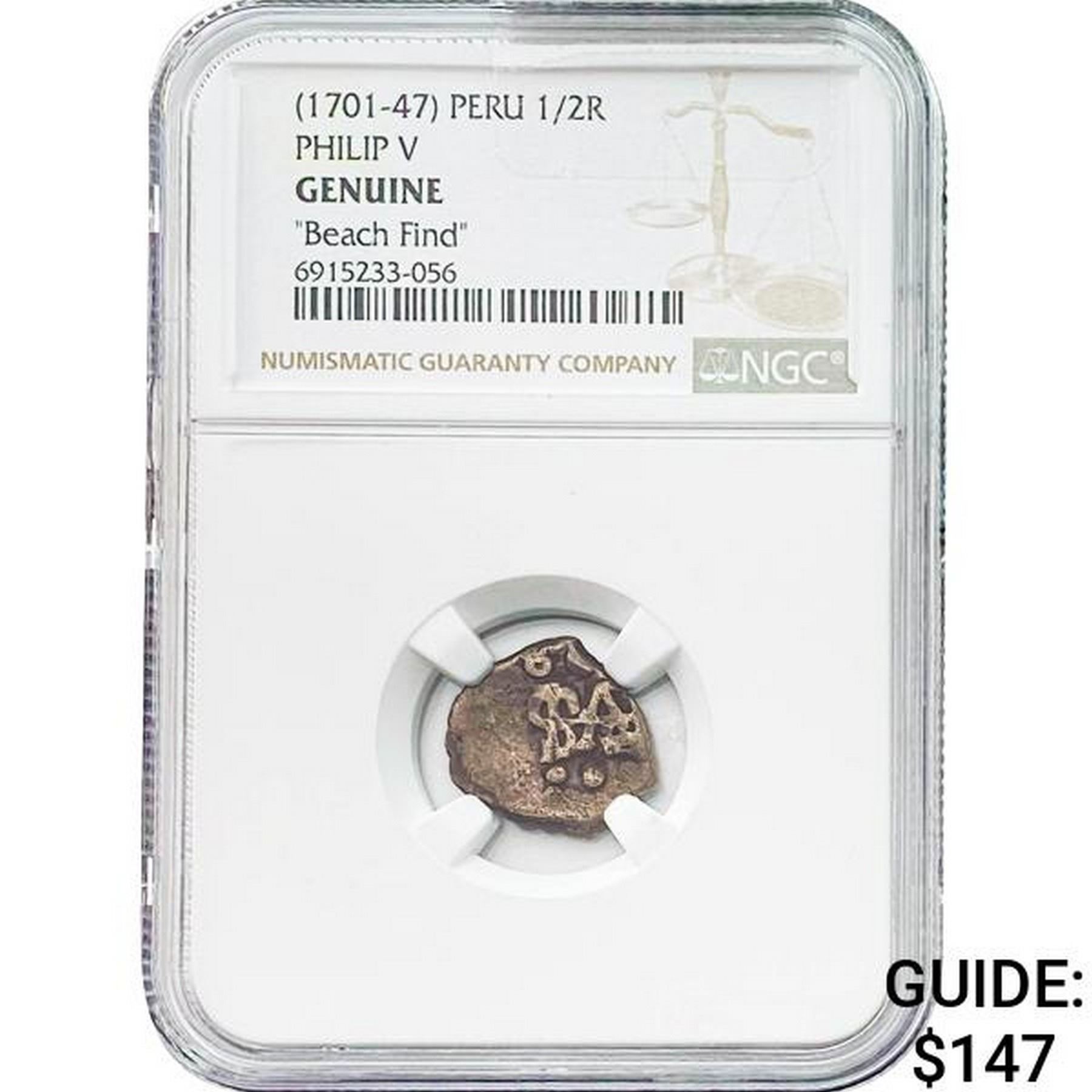 [1701-47] Peru 1/2 Real-Philip V "Beach Find" NGC
