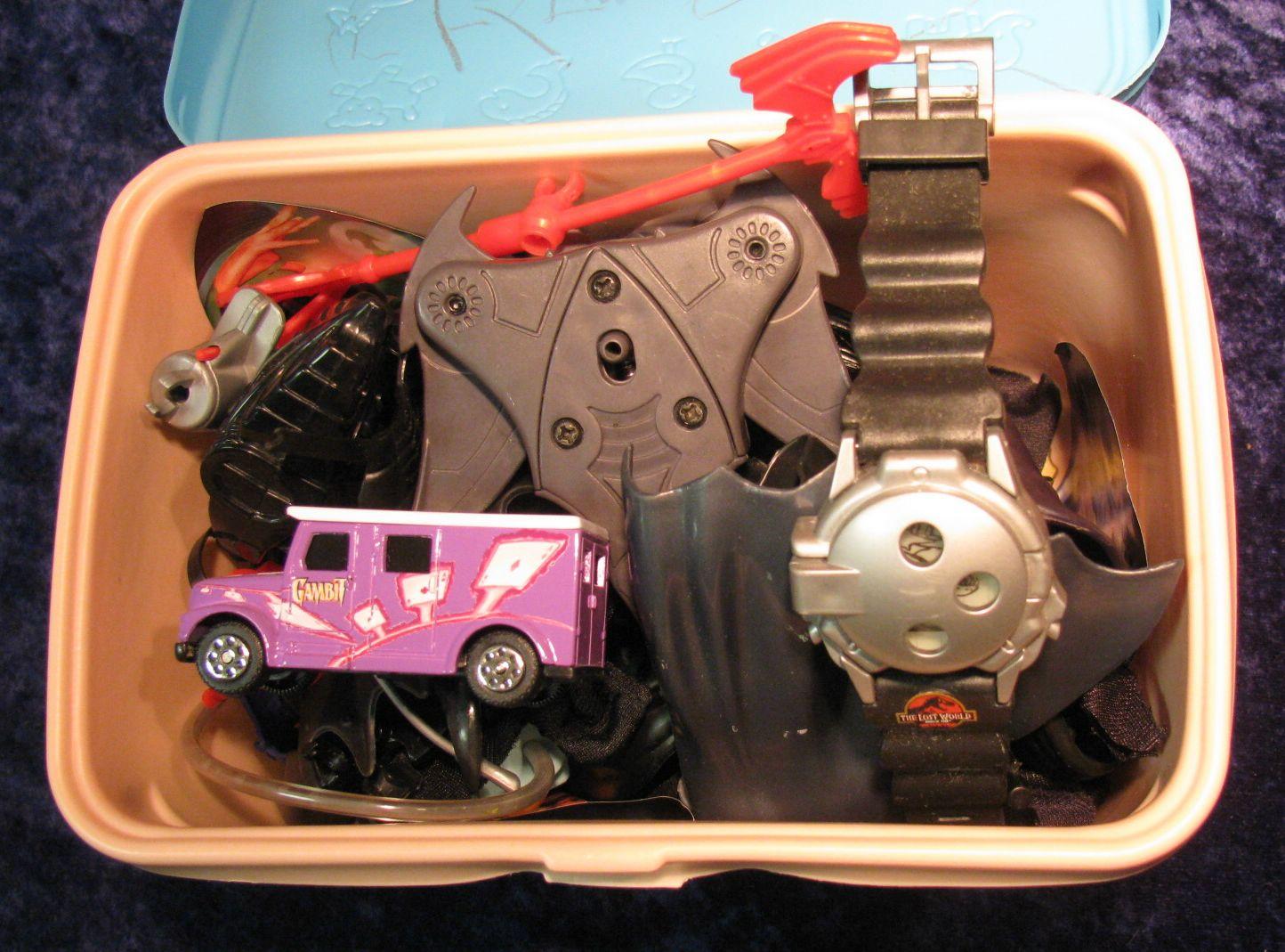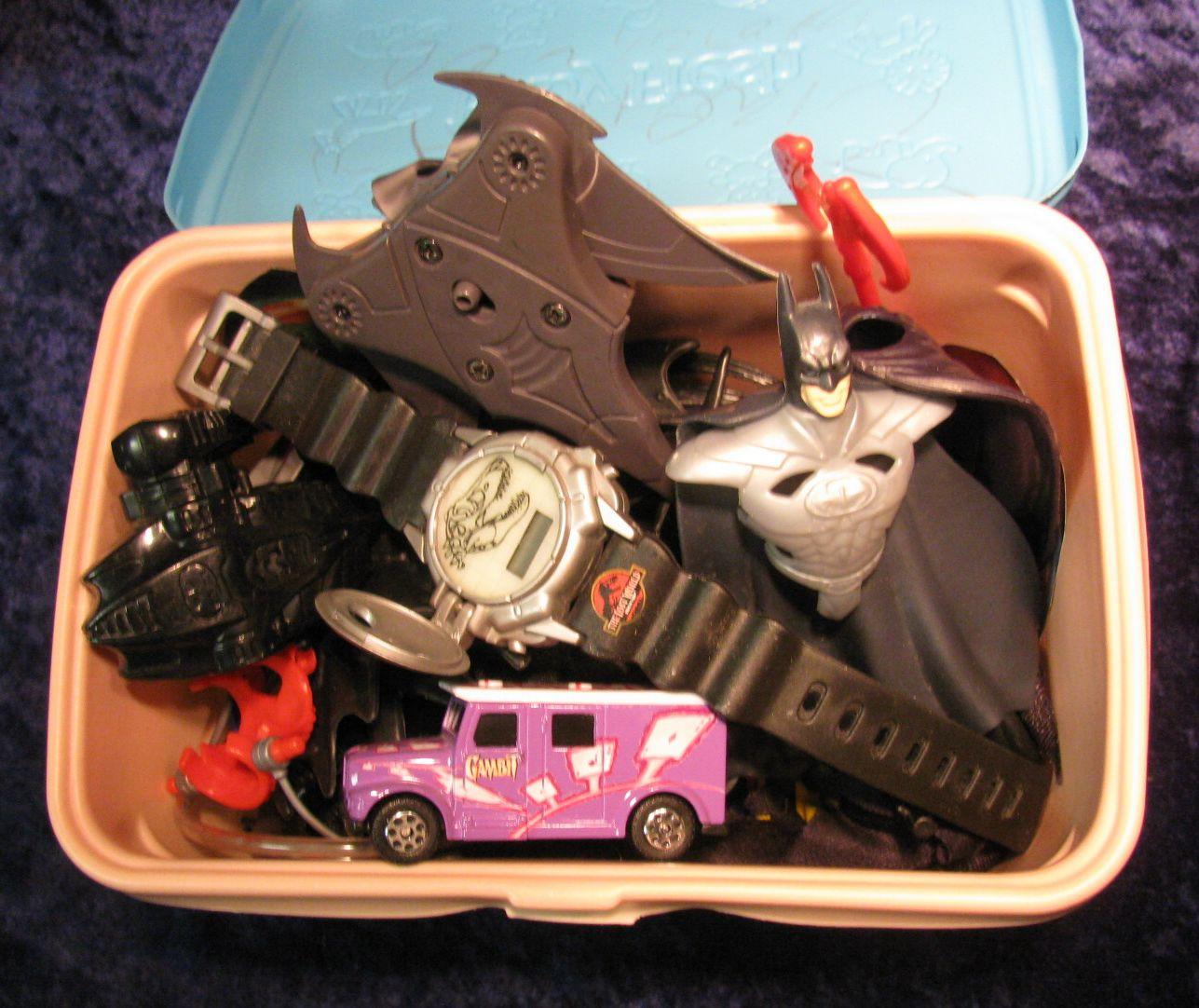 1705. Jurassic Park Wristwatch & large group of Batman Toy accessories.