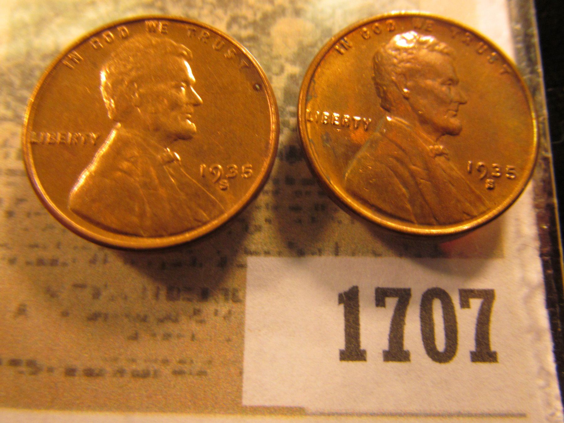 1707 _ Pair of 1935 S Lincoln Cents, Brilliant Red-brown Uncirculated.