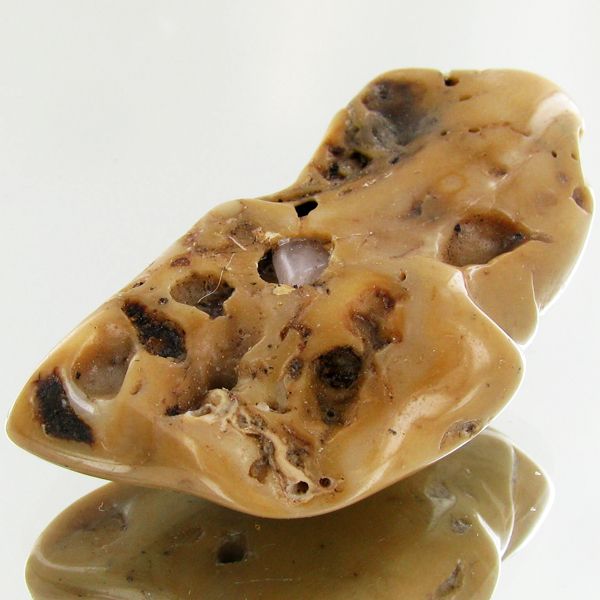 Excellent natural specimen; drilled and ready for pendant; with customary treatment but natural color