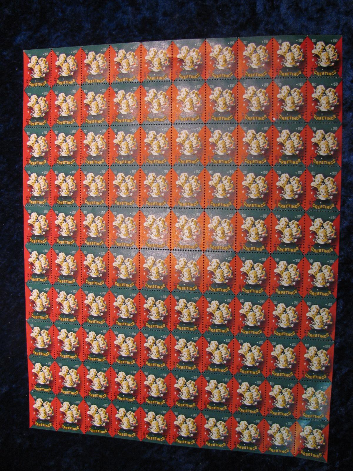 171. 1950 Mint Sheet of 100 Christmas Greetings American Tuberculosis Association Stamps.