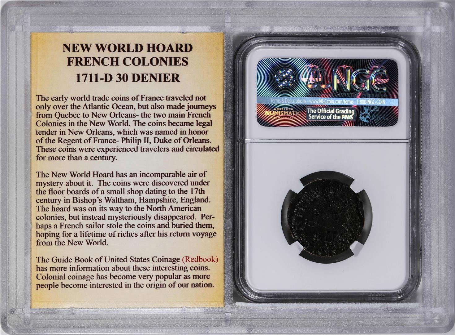 1710-13-D French Colonies 30 Denar New World Hoard NGC Genuine with Story Box