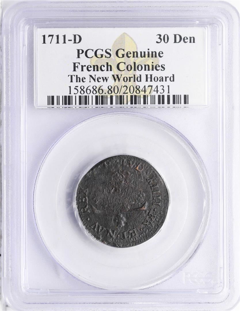 One 1711-D French Colonies 30 Deniers Coin PCGS Genuine. PCGS Graded.