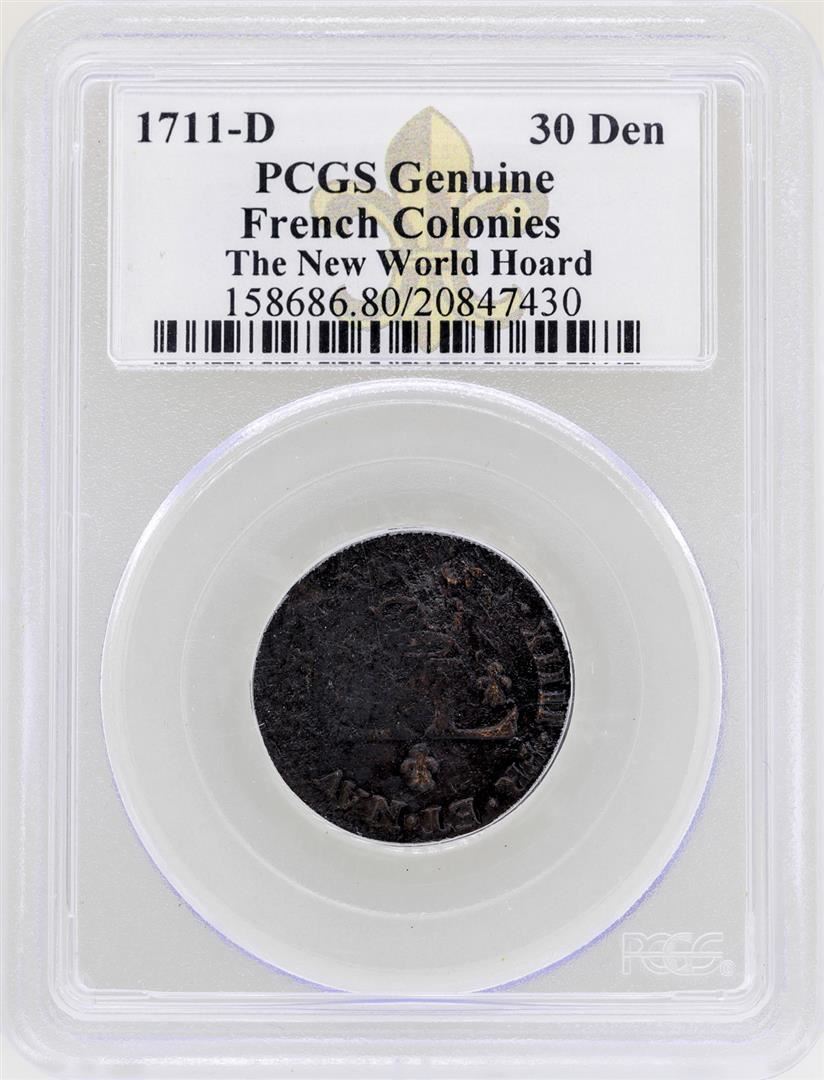 One 1711-D French Colonies 30 Deniers Coin PCGS Genuine. PCGS Graded.
