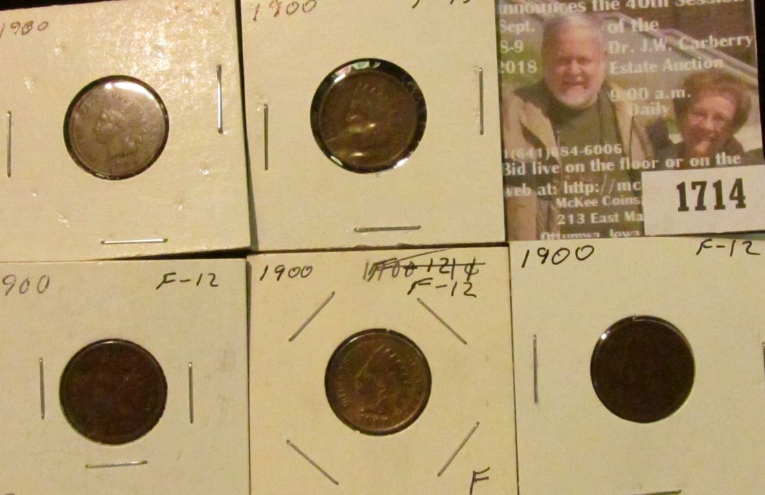 (5) 1900 Indian Head Cents. F-12.