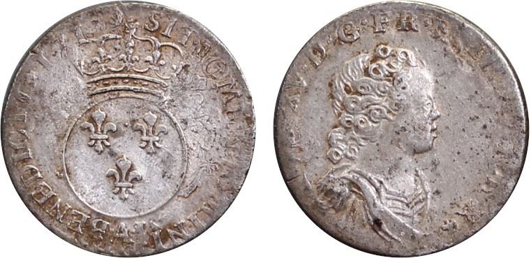 1715A 1/10 Ecu Vertugadin Louis XV.  Fine example for issue.