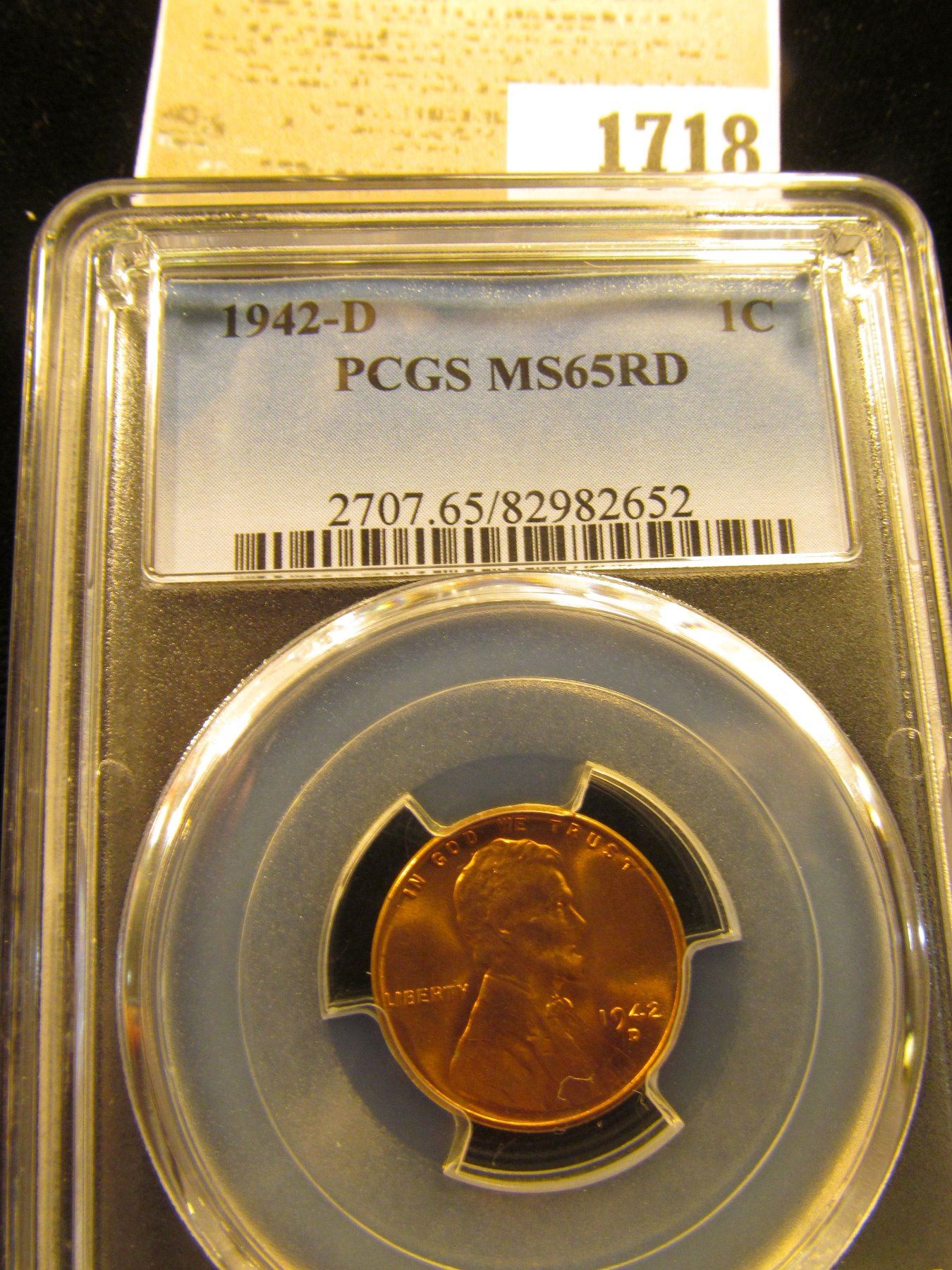 1718 _ 1942 D Lincoln Cent, PCGS slabbed MS65RD