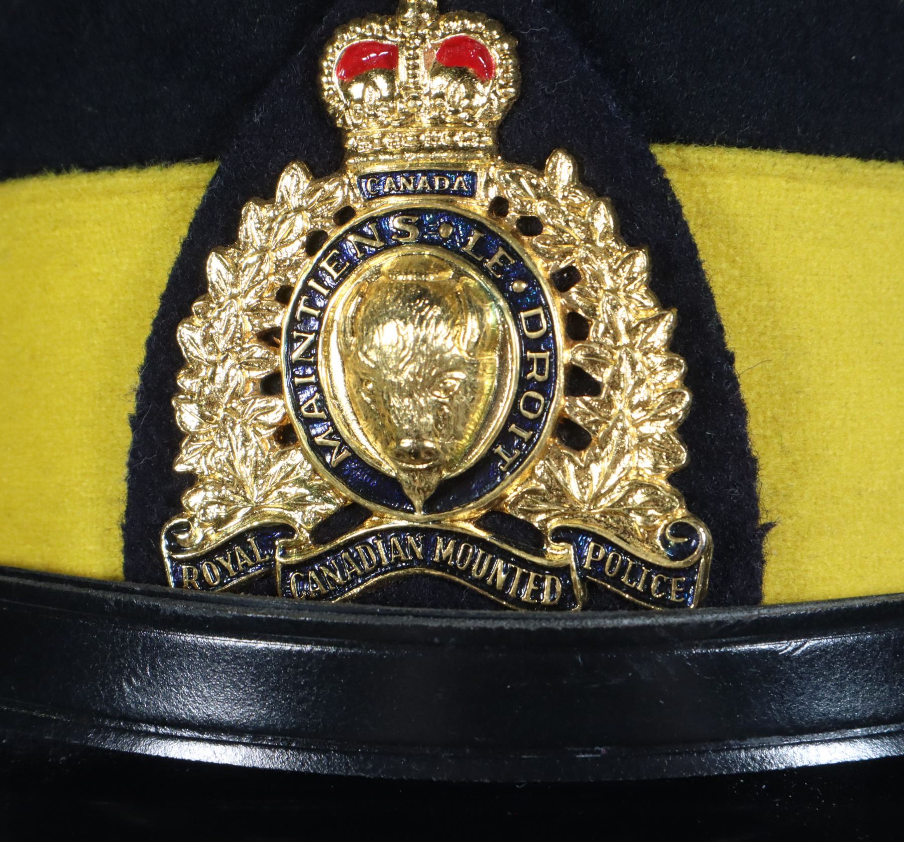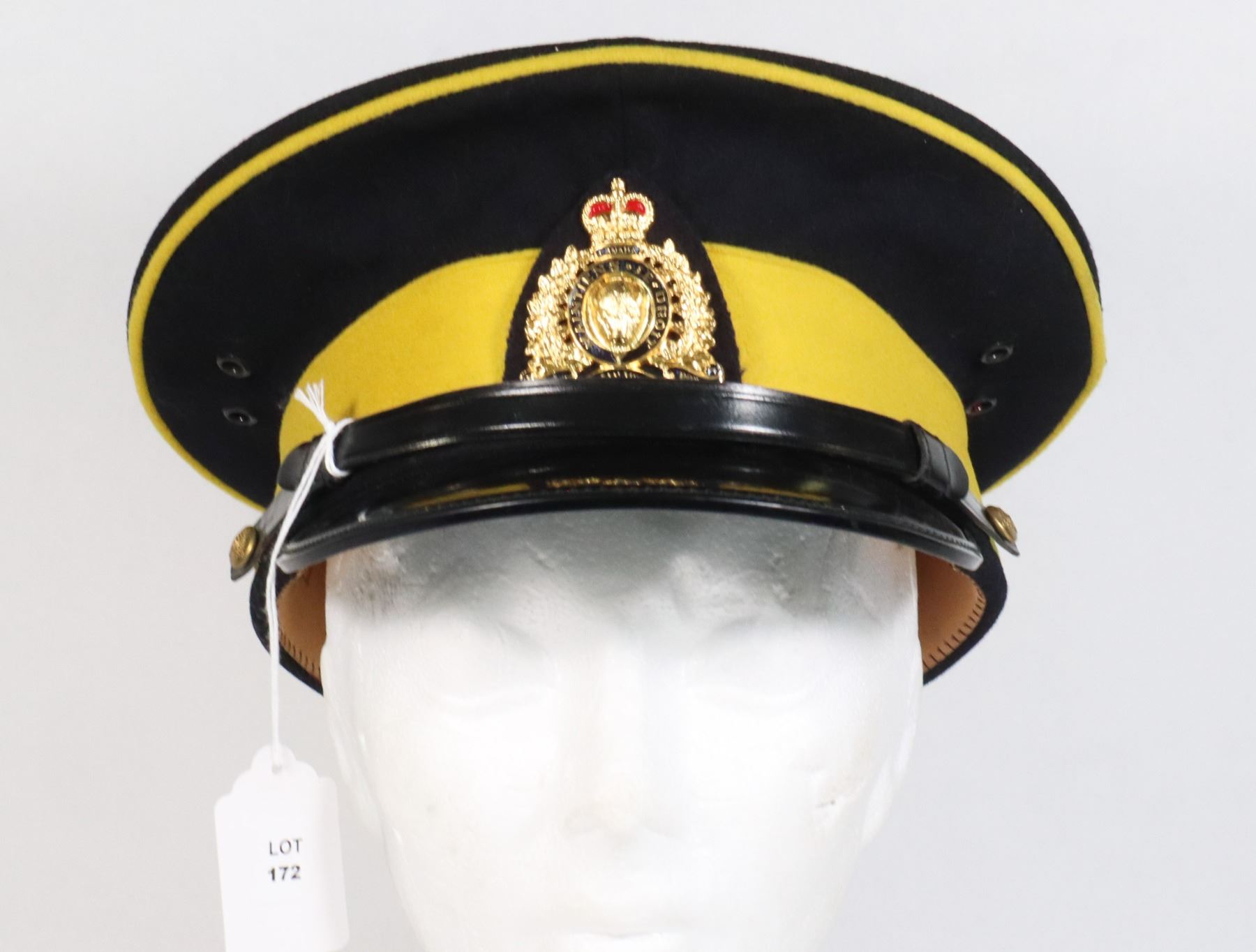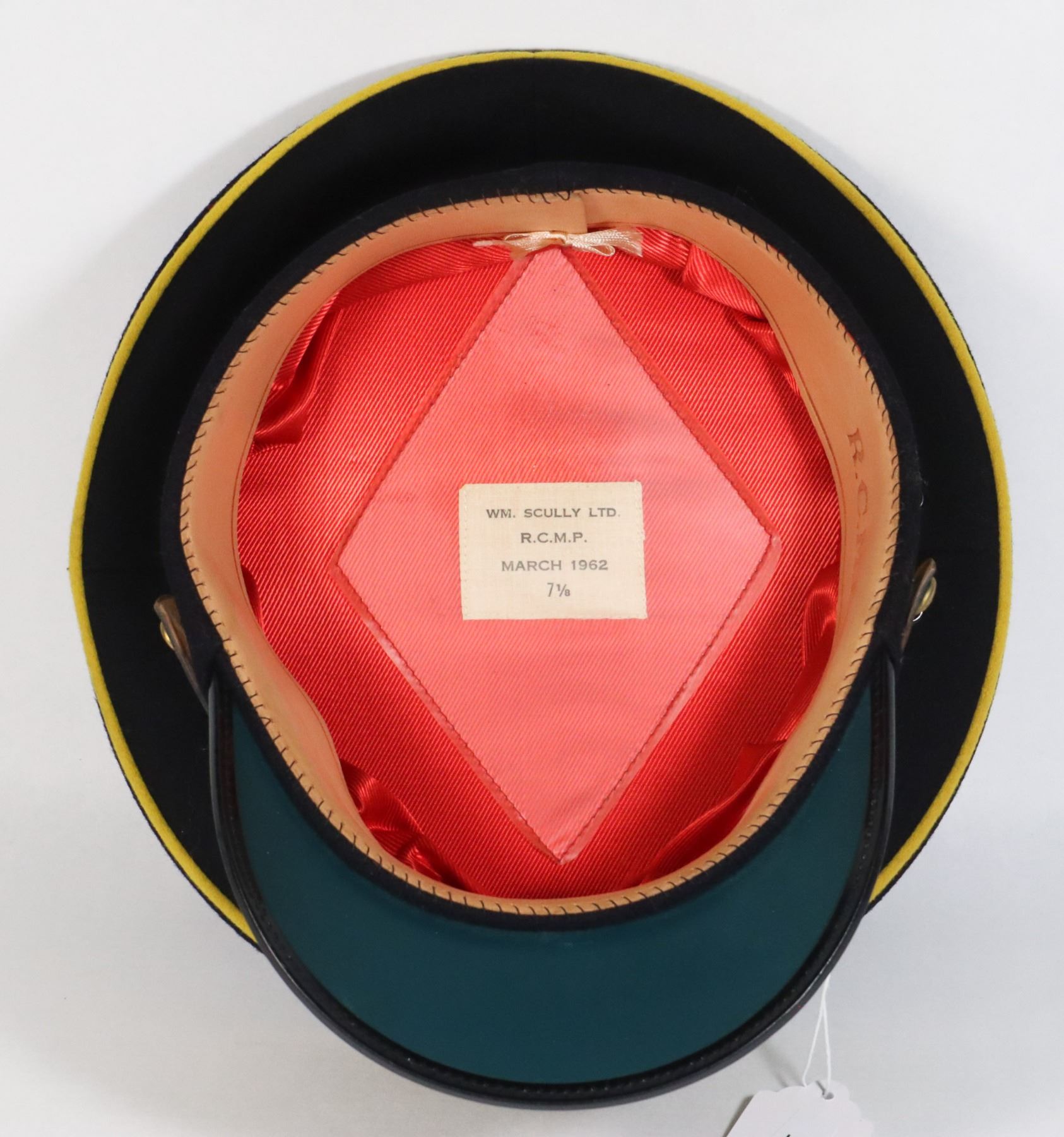 DATED MARCH 1962 MADE BY WILLIAM SCULLY SIZE 7 1/8 WITH QUEEN ELIZABETH II CAP BADGE ROYAL CANADIAN MOUNTED POLICE RCMP PEAKED FORAGE CAP