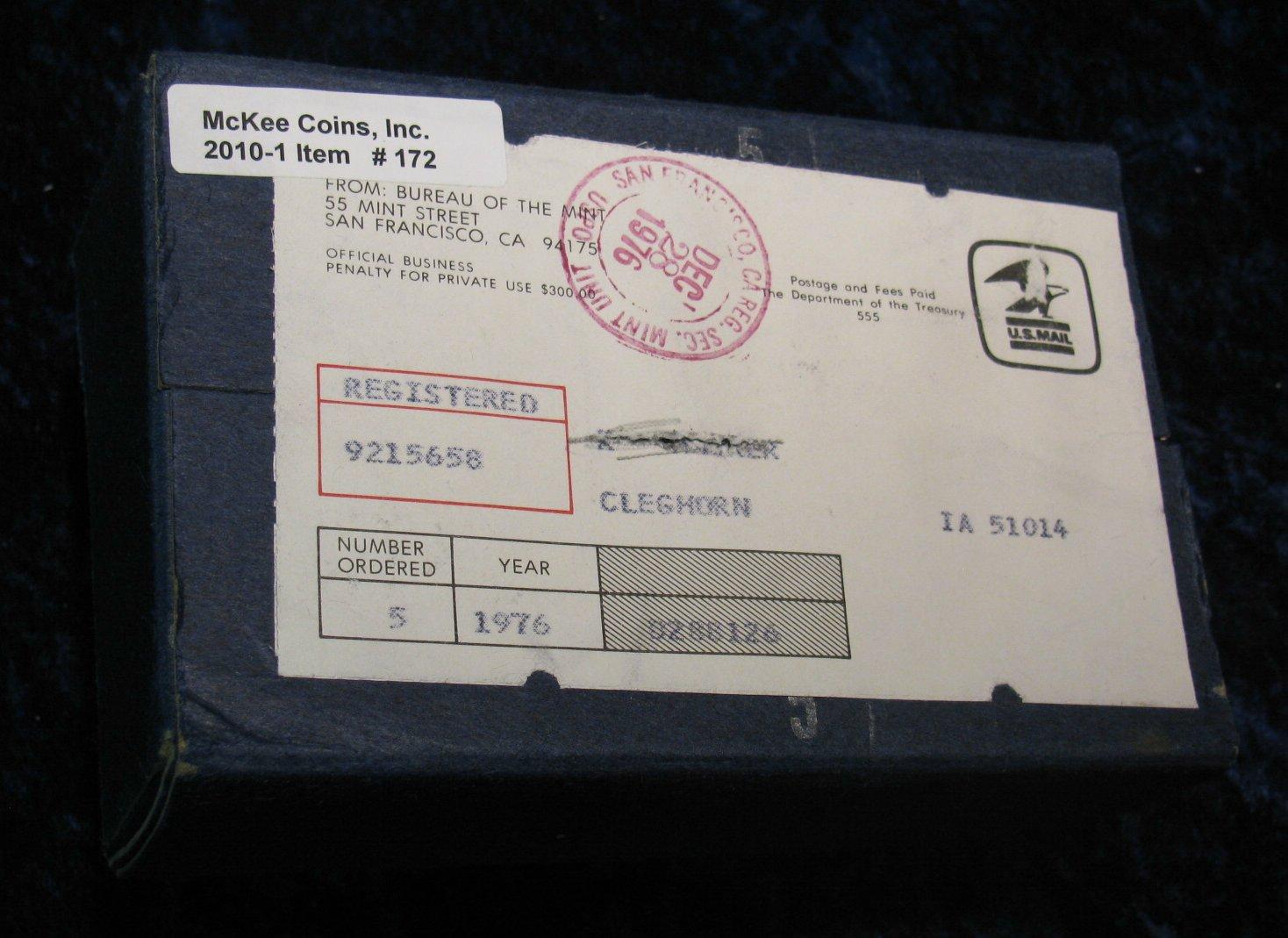 172. Unopened box of (5) 1976 S U.S. Proof Sets. Original.
