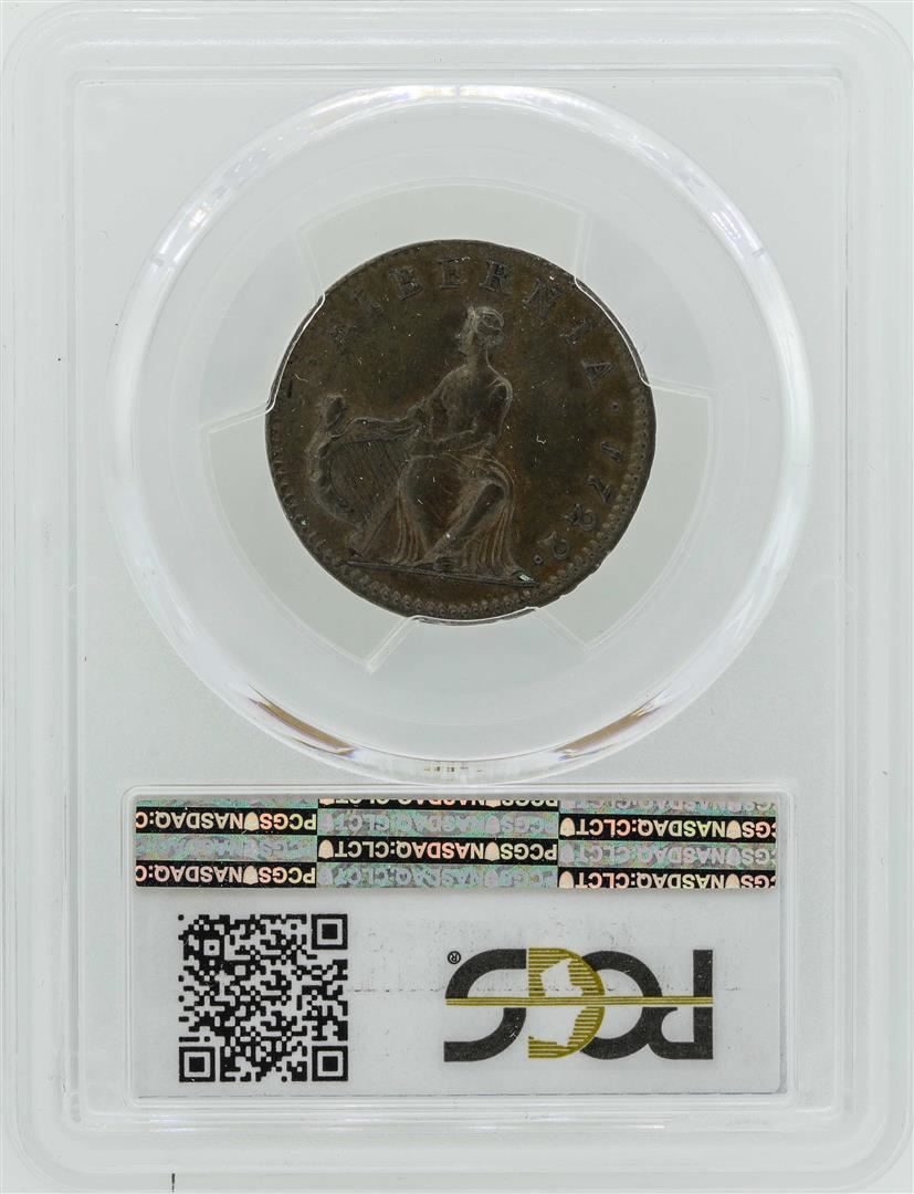 One 1722 Half Penny Hibernia Harp Left Copper Coin PCGS MS62BN. PCGS Graded.