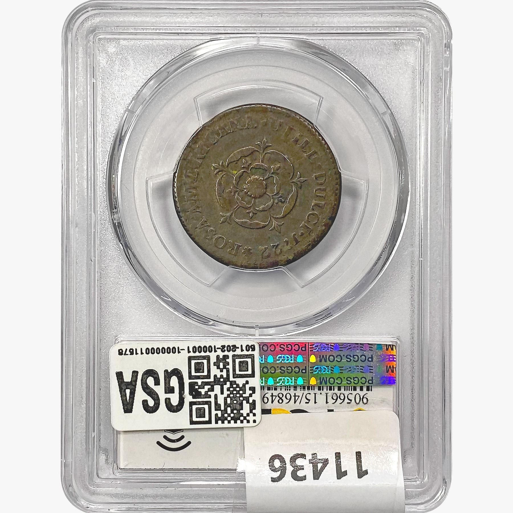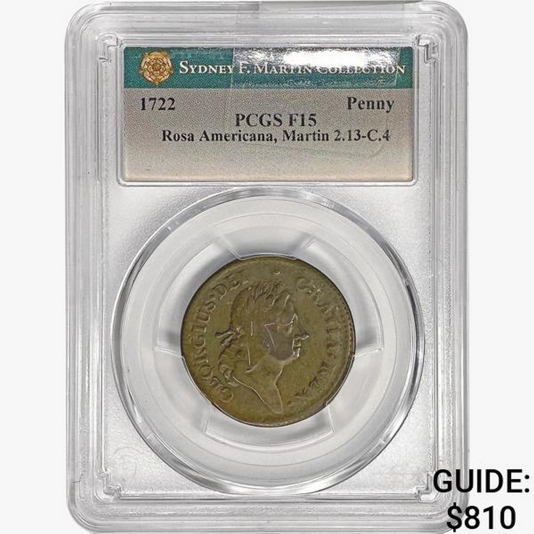 1722 Rosa Americana Cent PCGS F15 Martin 2.13-C.4