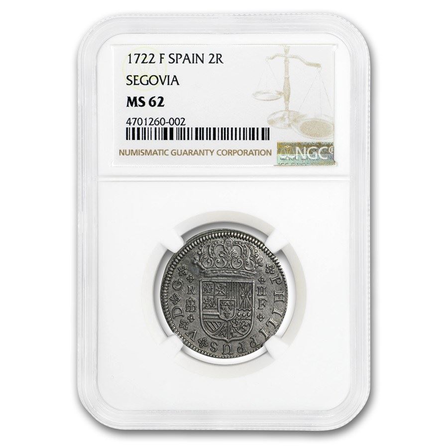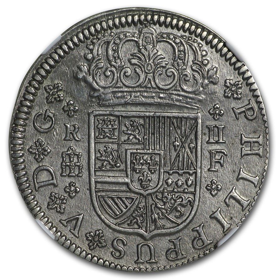 1722 Spain Silver 2 Reales Phillip V MS-62 NGC