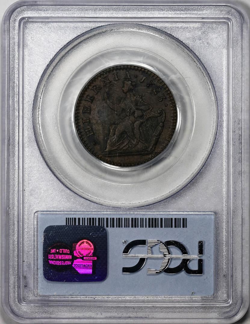 One 1723 1/2 Penny Hibernia Colonial Copper Coin PCGS AU58. PCGS Graded.