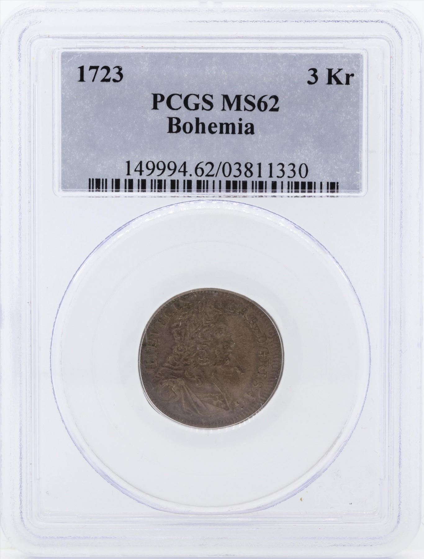 One 1723 Bohemia 3 Kreuzer Coin PCGS MS62.