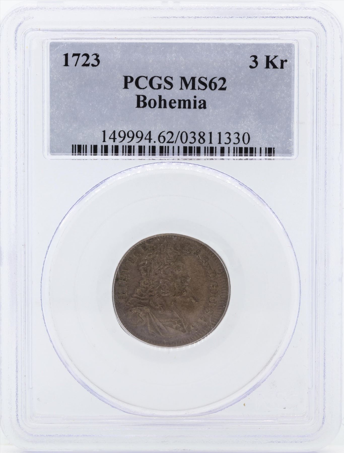 One 1723 Bohemia 3 Kreuzer Coin PCGS MS62.