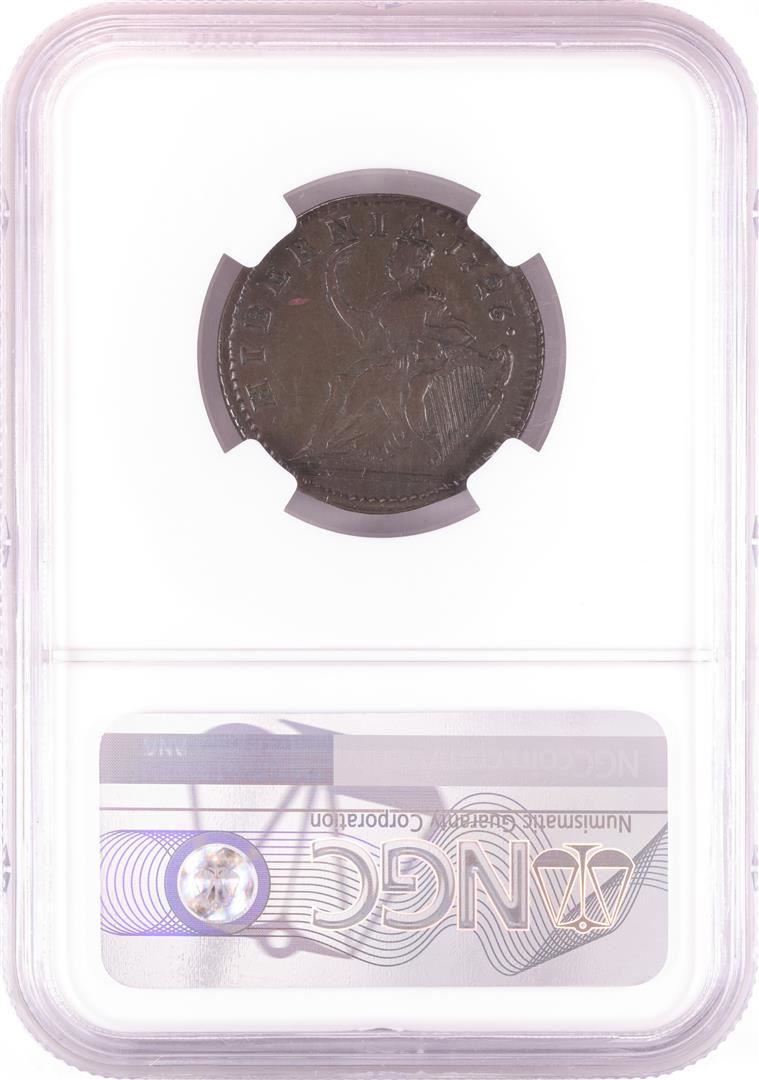 One 1723 'Dei Gratia' 1/4P Hibernia Coin NGC VF35 BN. NGC Certified.