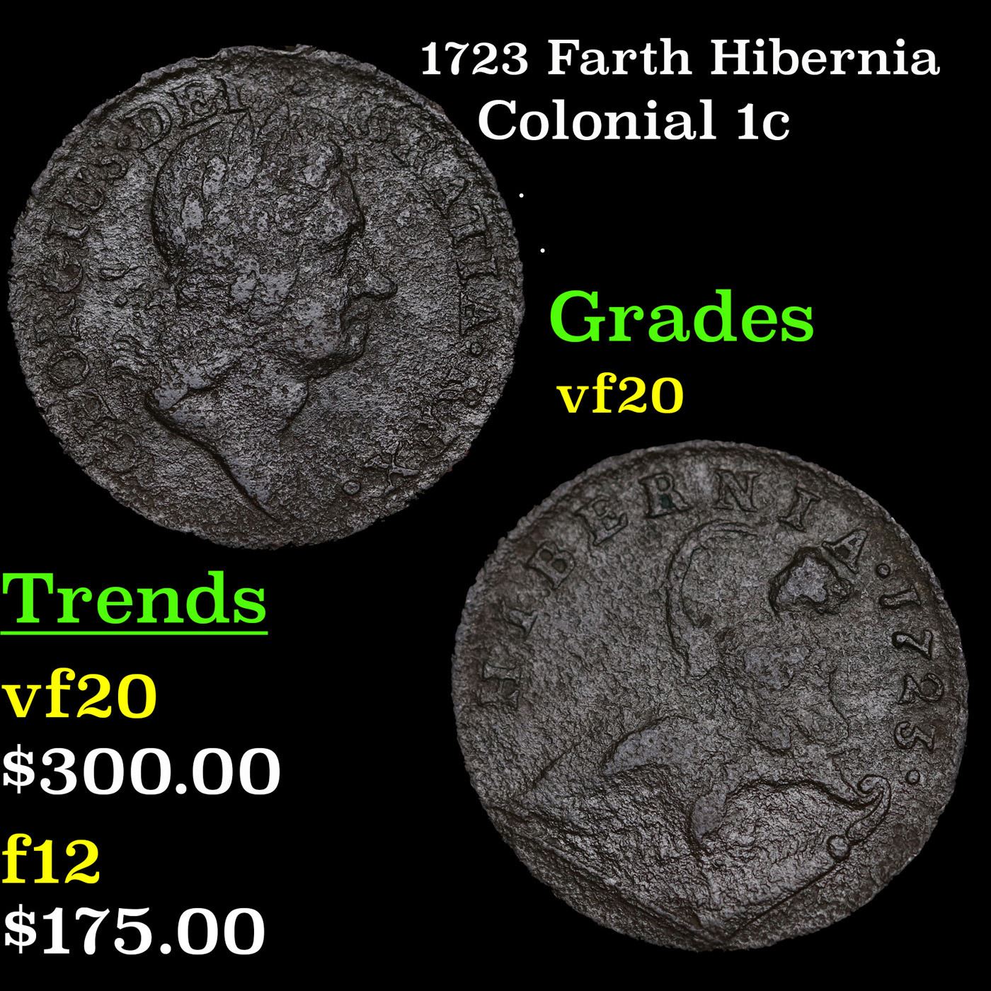 1723 Farth Hibernia Colonial Cent 1c Grades vf, very fine