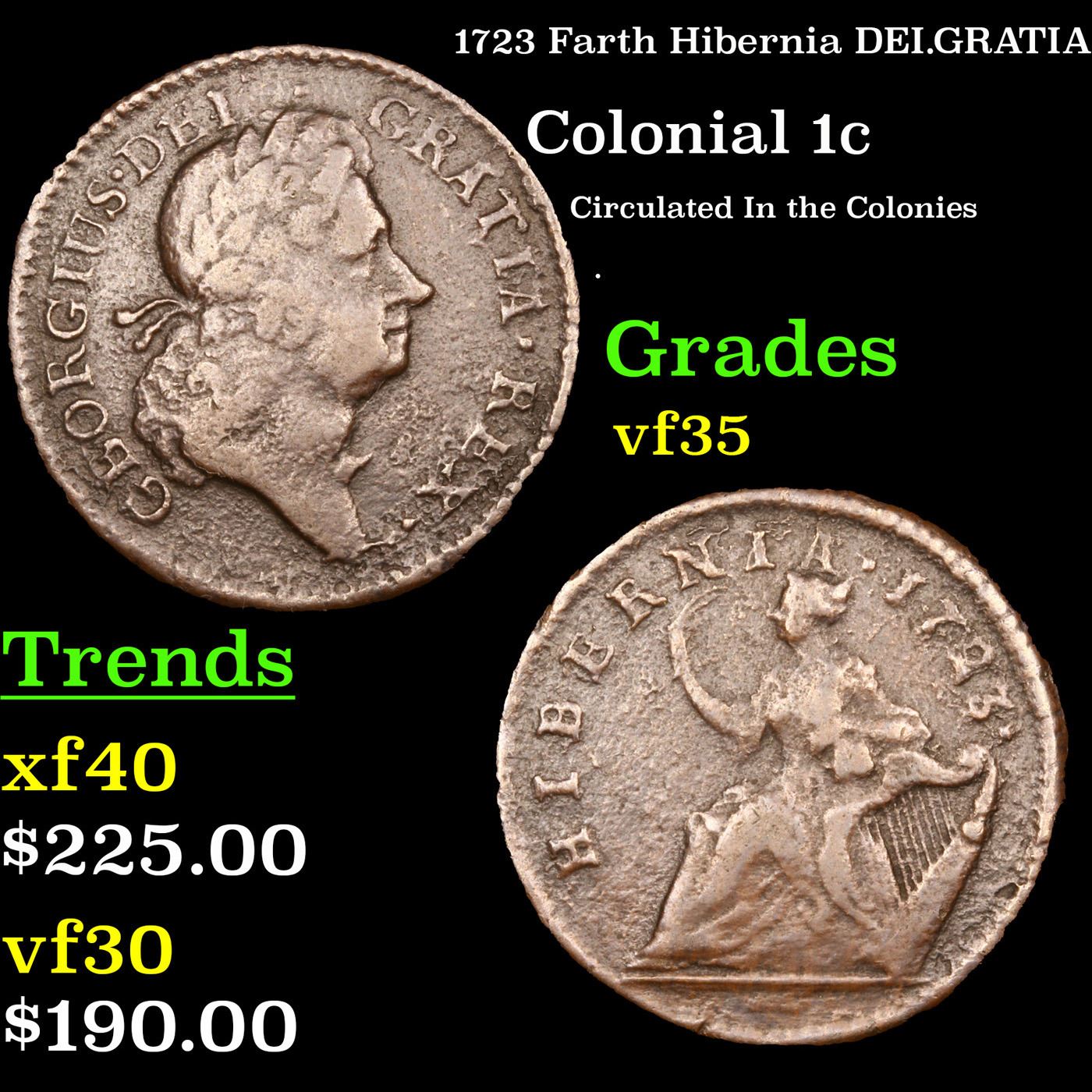 1723 Farth Hibernia DEI.GRATIA Colonial Cent 1c Grades vf++.