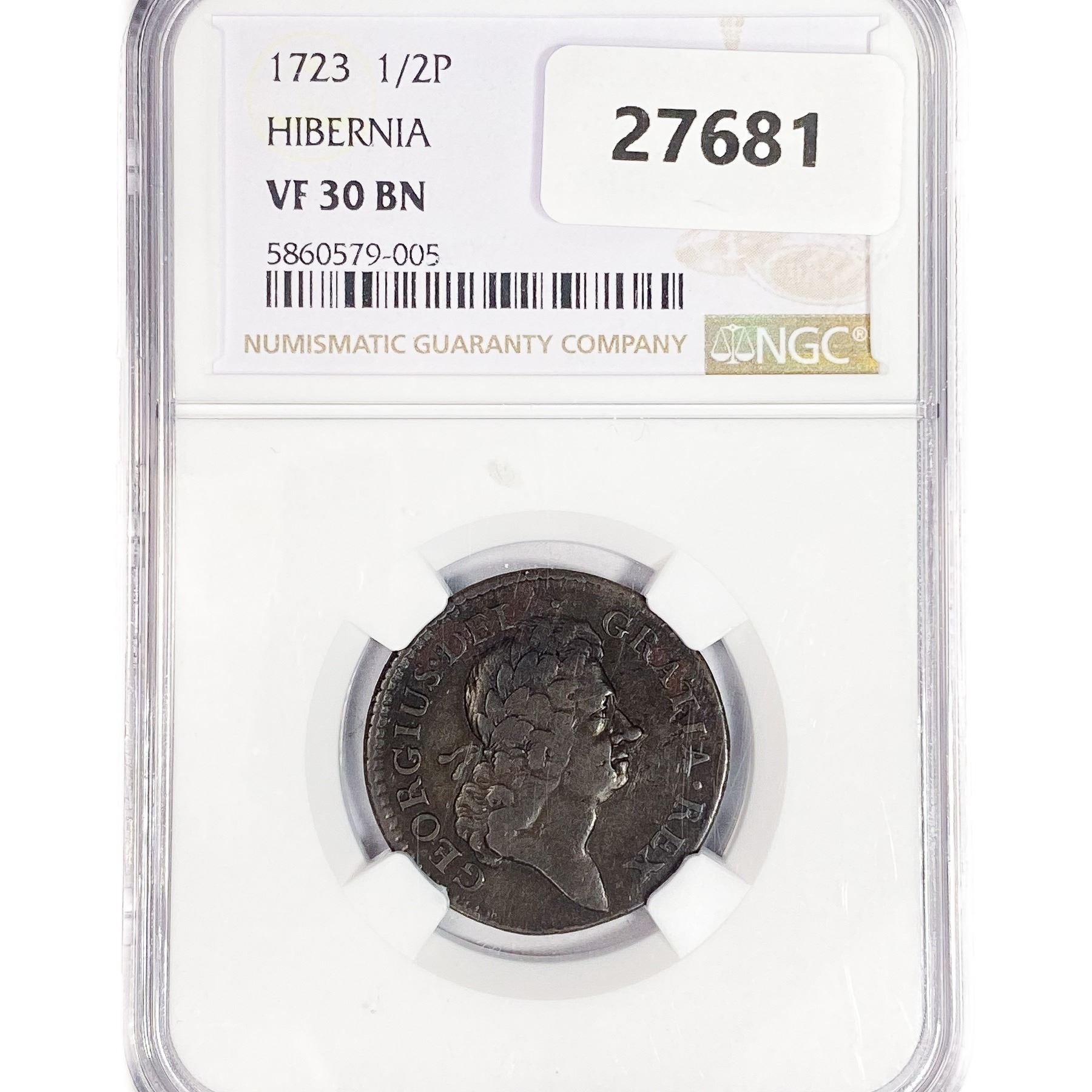 1723 Hibernia Colonial Halfpenny NGC VF30 BN