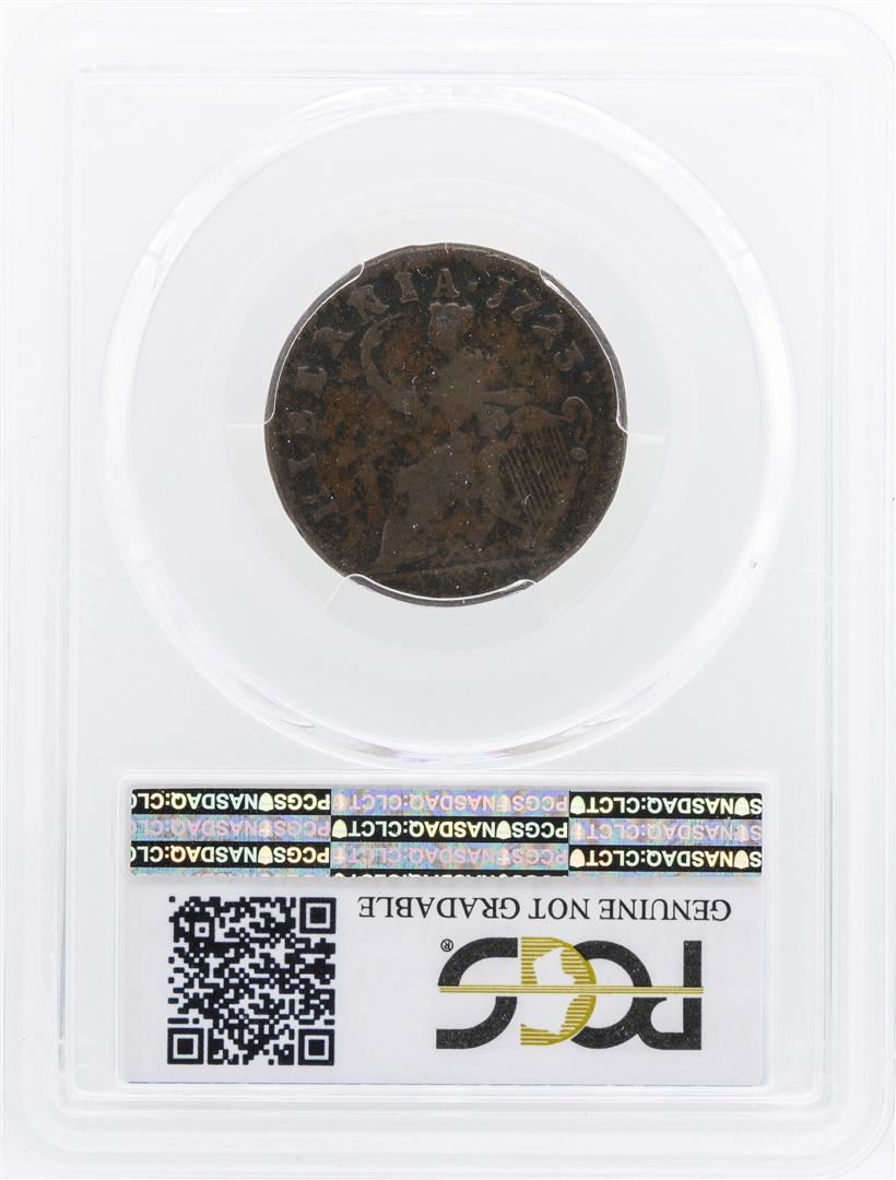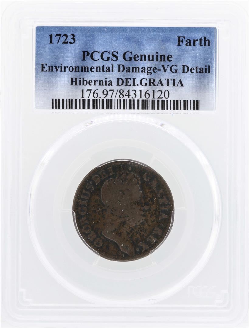 One 1723 Hibernia DEI.Gratia Farth Coin PCGS Genuine VG Details. PCGS Graded.