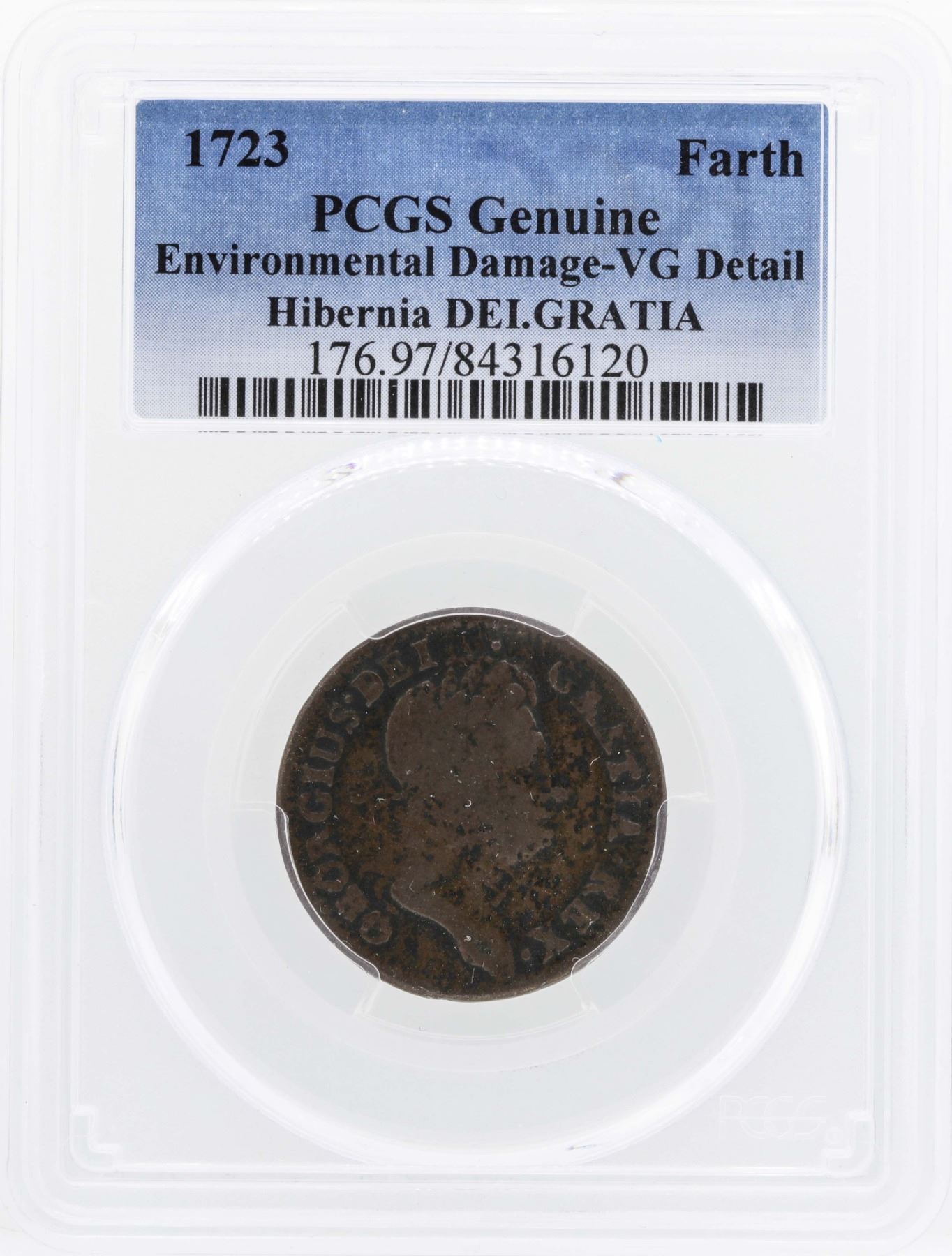 One 1723 Hibernia DEI.Gratia Farth Coin PCGS Genuine VG Details.