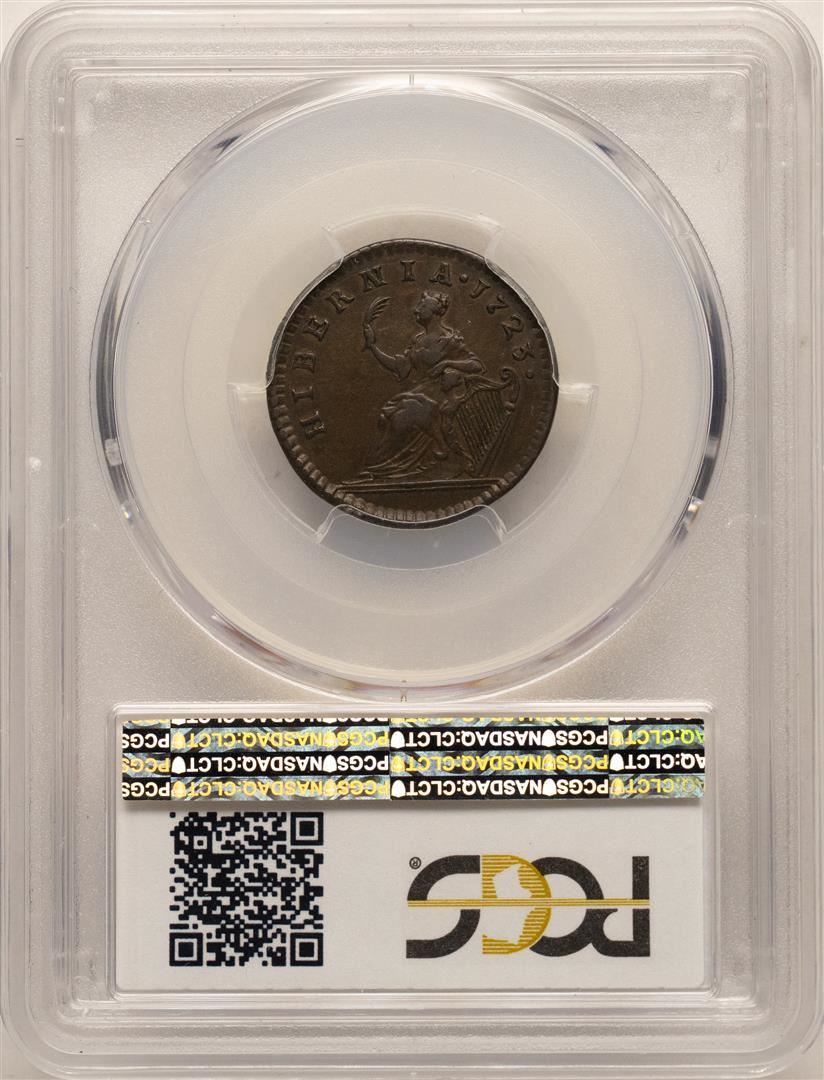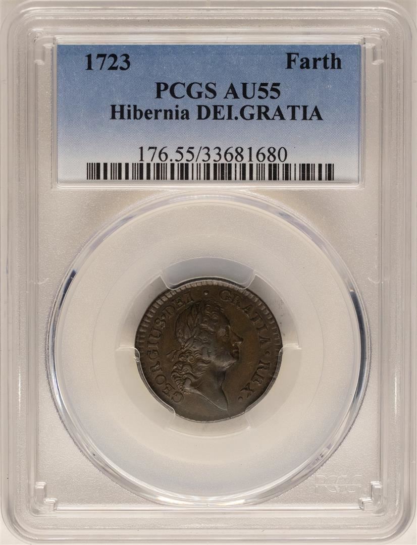 1723 Hibernia DEI.Gratia Farth Colonial Coin PCGS Genuine AU55