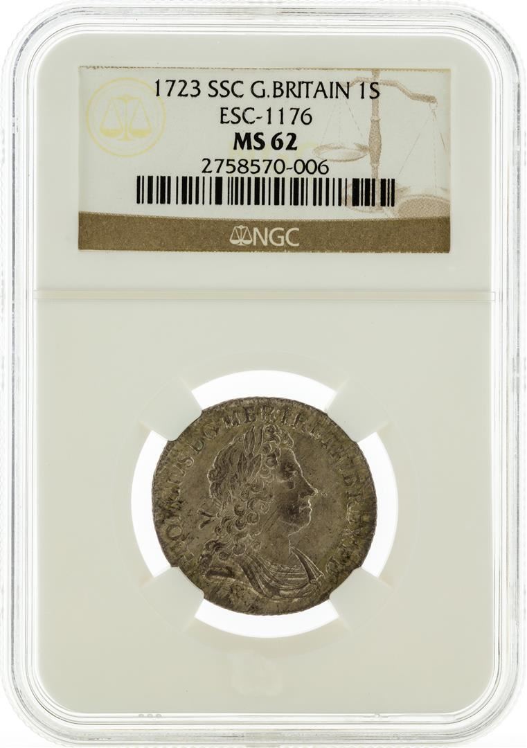 One 1723 NGC MS62 SSC G. Britain 1 Schilling ESC-1176. NGC Certified.
