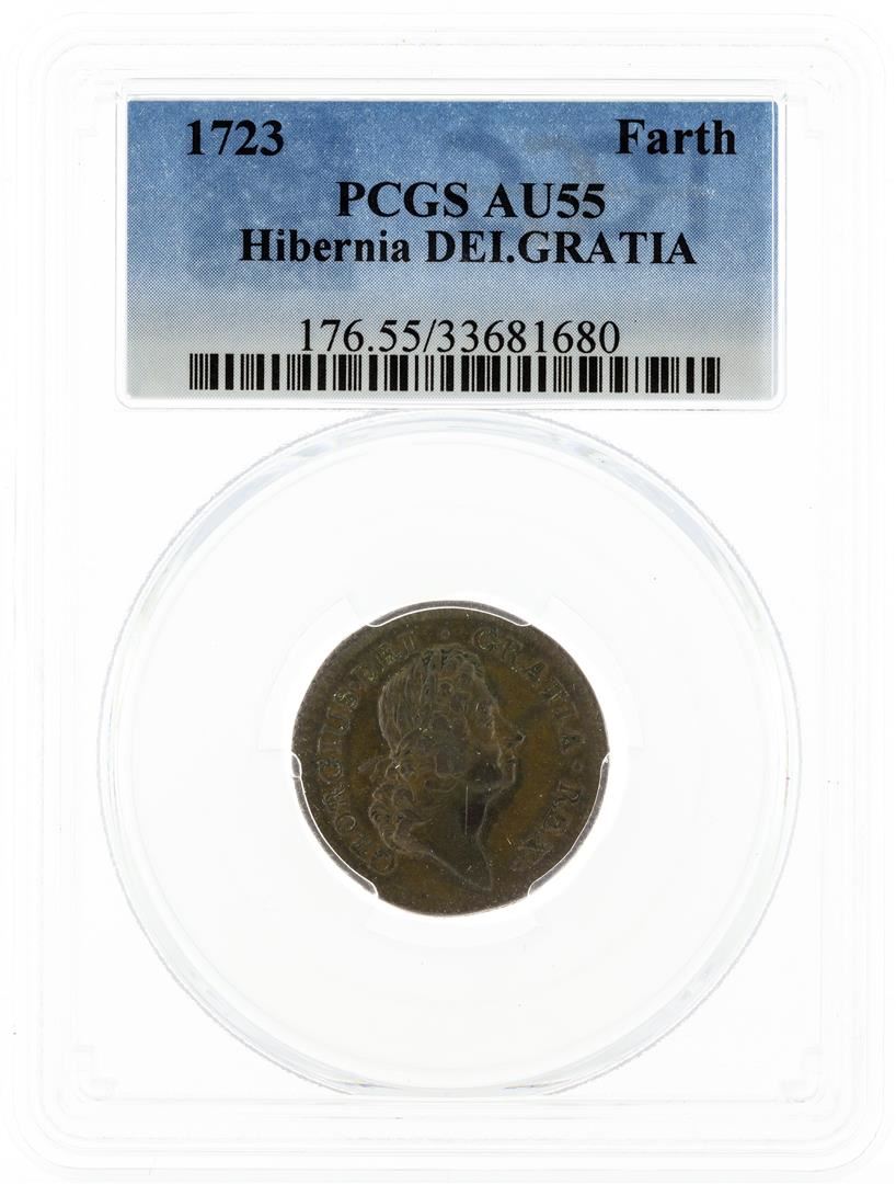 One 1723 PCGS AU55 Hibernia Farth DEI. GRATIA. PCGS Certified.